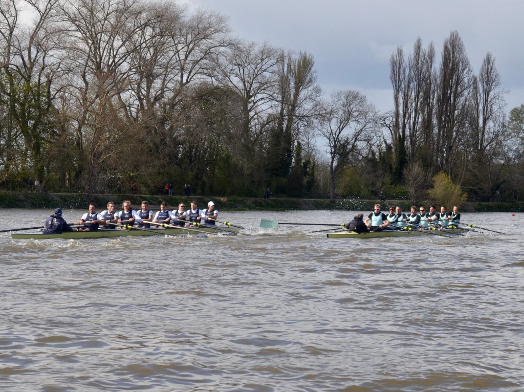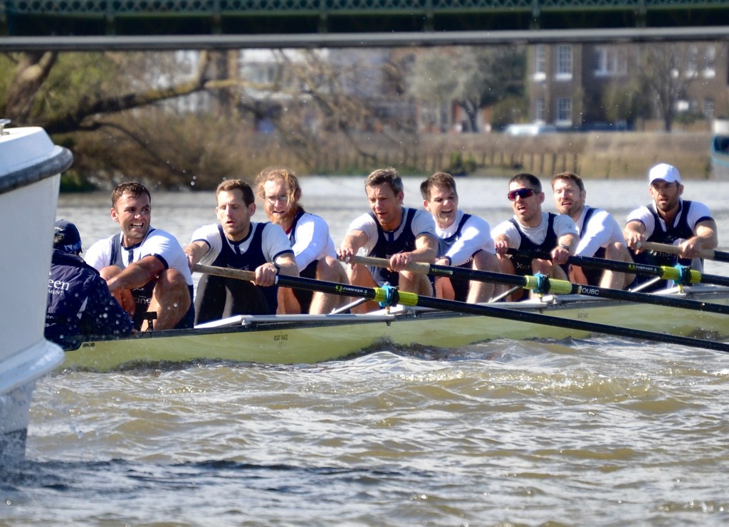 On the afternoon of Saturday, 2 April, the day before the youngsters did their thing, the first women’s and twenty-sixth men’s Veteran Boat Race took place from the traditional start at Putney to what the event inexplicably calls “Furnivall Steps”, the first steps upstream of Hammersmith Bridge on the Middlesex side. Whatever the nomenclature, the course is one where the two bends even out.