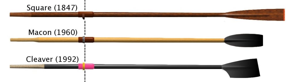 2. At CUBC in Spring 1992 we had on loan what we believed to be the first set of cleavers in the UK (our coaches had strong C2 connection). They had much bigger spoons than nowadays, we tried them at Ely, perhaps not very scientifically, weren’t sure of any benefits and didn’t use them for the boat race. We lost. But then again, Oxford had Macons too! But then only 3 months later, they were everywhere (with a spoon closer to current design) and I think only one winning Henley crew still had Macons – that’s how fast they took over.