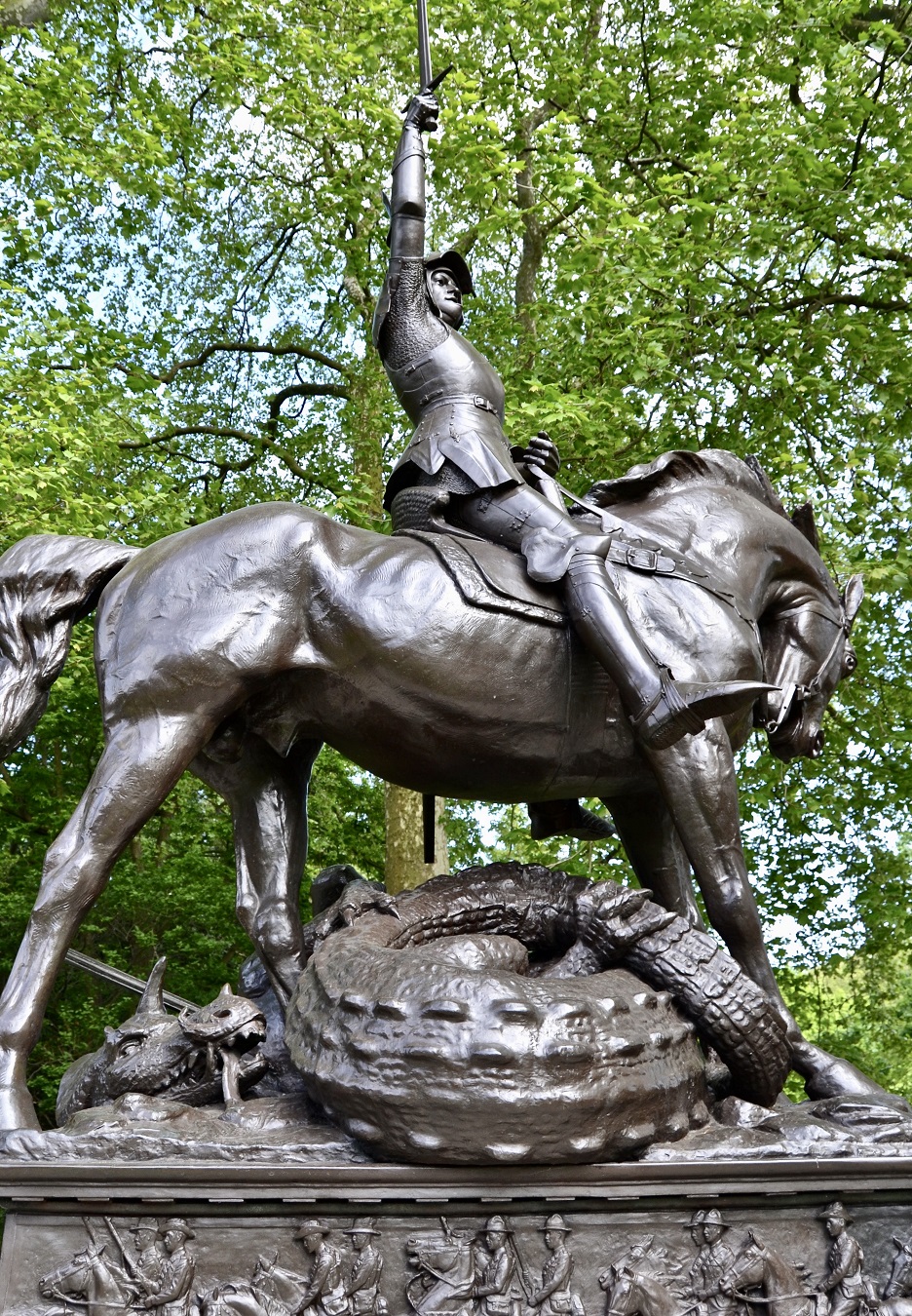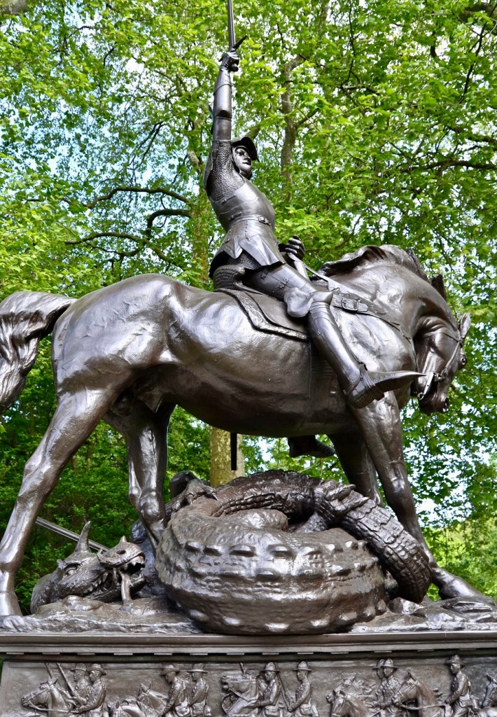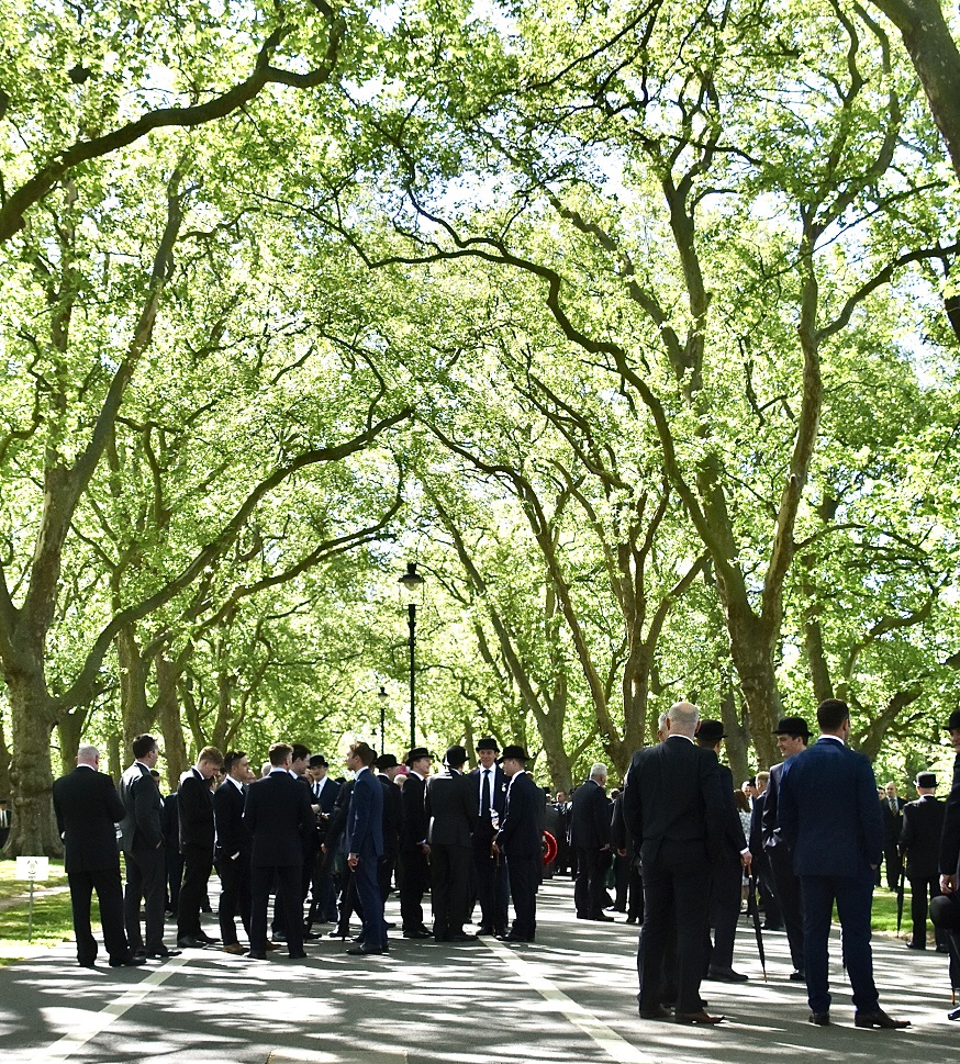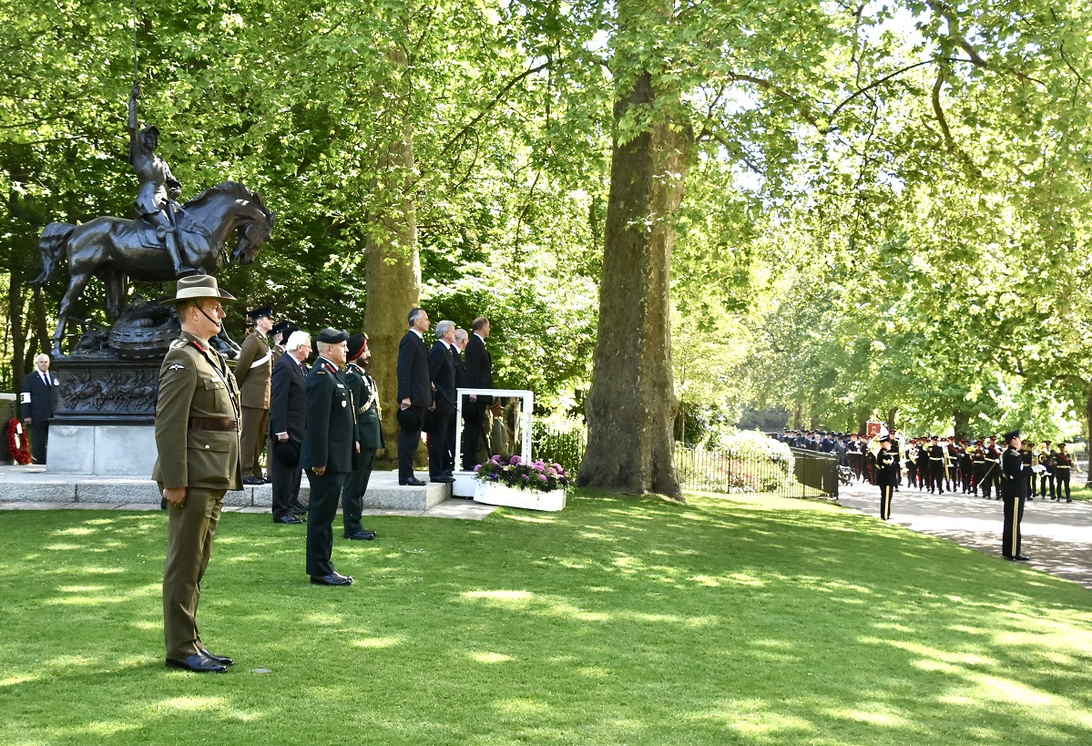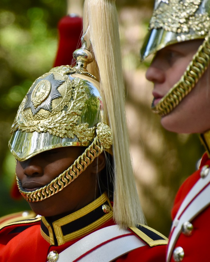 It was a warm and sunny day and Hyde Park’s Broad Walk with its long archway of shady trees was the perfect gathering spot. The order for those marching was “RV at your Regimental Standard by 1045hrs”.The King’s Royal Hussars are easily identifiable by their brown berets and crimson trousers. Prince Albert’s personal livery was crimson, and he granted permission for the 11th Light Dragoons to wear overalls in that colour after they escorted him to his marriage with Queen Victoria. Not exactly The Charge of the Light Brigade but an interesting honour nonetheless.Old soldiers, old jokes? A Chelsea Pensioner and a member of the Queen’s Royal Lancers.The gentleman on the centre is wearing a Brigade of Guards tie, the regimental tie of both the Foot Guards and the Household Cavalry. The medal on his right is the Royal Victorian Order which recognises “distinguished personal service to the monarch”.It is always interesting to see how women interpret what the female version of a suit and tie is. On the left, the tie is Light Dragoons and the medal is from the UN, awarded in recognition of the United Nations Multidimensional Integrated Stabilisation Mission in Mali. The woman on the right is wearing the Operational Service Medal for Iraq and Syria. Her lapel badge is probably that of the Queen’s Royal Hussars.They seem terribly young, but I imagine that these boys are currently serving. The two on the left are wearing the Light Dragoons tie. On the sartorial front, they may have tried their best and this probably passes muster amongst their contemporaries. I suppose that I should not be too churlish as at some future point they may put themselves in harm’s way on our behalf.Men of the Life Guards at their “RV Point.”Two troopers of the Life Guards, the senior regiment of the British Army. For some reason, probably forgotten, they wear their chin strap below their lower lip, as opposed to the other regiment of the Household Cavalry, the Blues and Royals, who wear it under their chin. The Cavalry Memorial or The Cavalry of the Empire Memorial shows England’s patron saint, St George, on horseback standing victorious over a slain dragon. Incongruously, the dying beast has an upturned Germanic moustache.The Salute was taken by HRH Prince Edward, Earl of Wessex, Royal Honorary Colonel of the Royal Wessex Yeomanry. Also pictured here are representatives of the armed forces of Australia, Canada and India.The parade was led by uniformed members of this year’s organising regiment, The Royal Wessex Yeomanry, carrying the standard of the Combined Cavalry Old Comrades followed by the Comrades’ wreath. Wearing the bowler hat is the Parade Commander, Colonel The Lord De Mauley.Serving members of the Household Cavalry, the Life Guards (white plumes) and Blues and Royals (red plumes). Amongst other duties, they act as the Queen’s personal bodyguard.