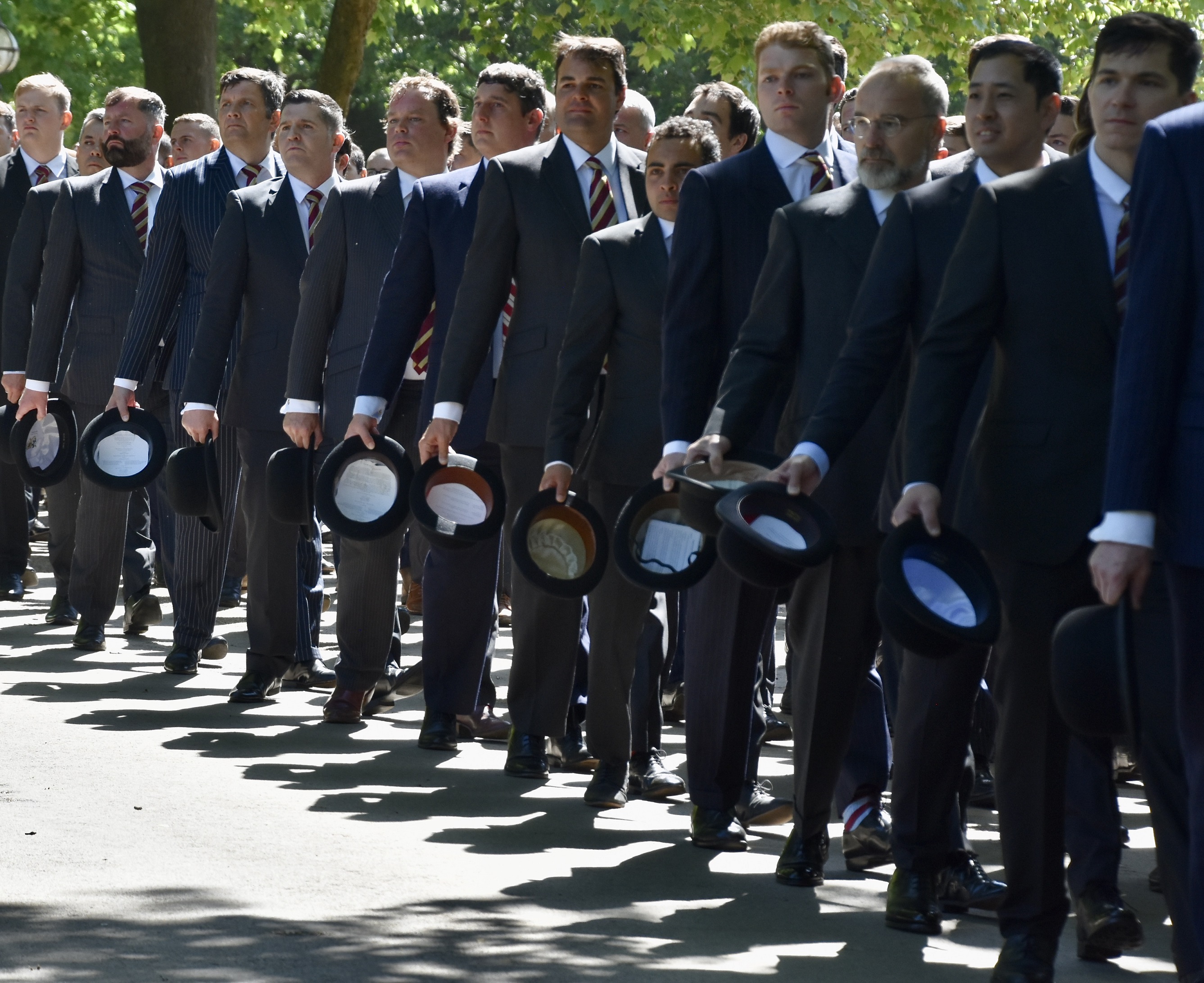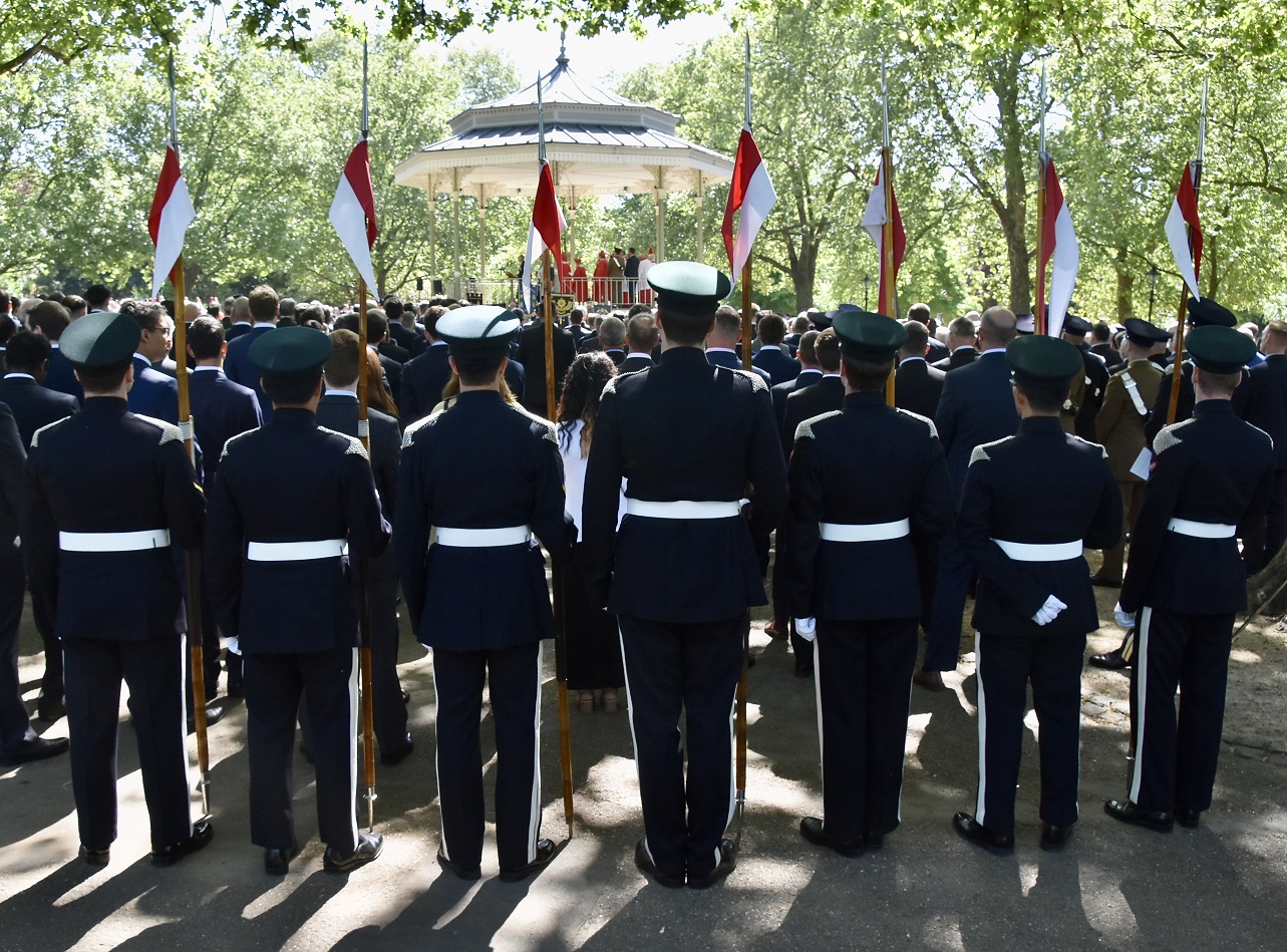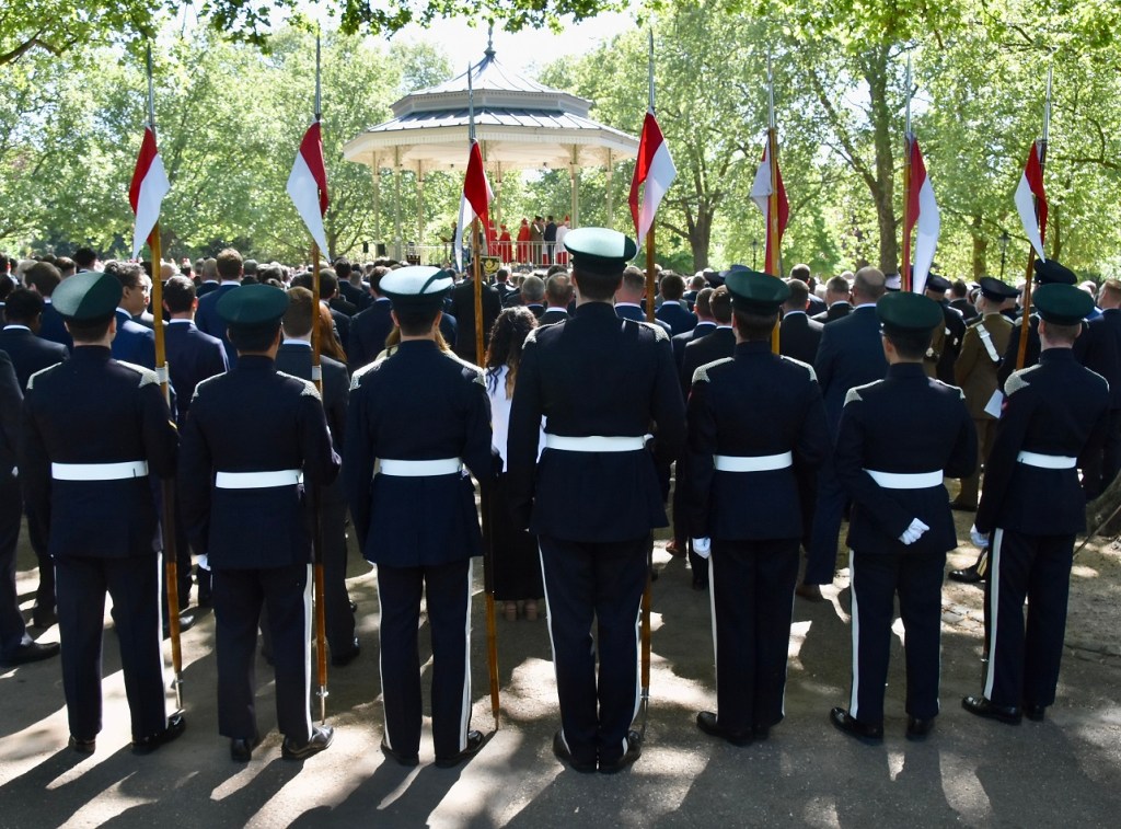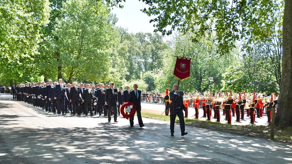 Where the Parade is perhaps not typical of other such events is that it contains a disproportionate number of officers and also that it is made up of a mix of current and former servicemen, all in civilian clothes. Officially, the dress is simply “lounge suits with medals and decorations” but, according to the Facebook page of the Army’s Headquarters, London District: