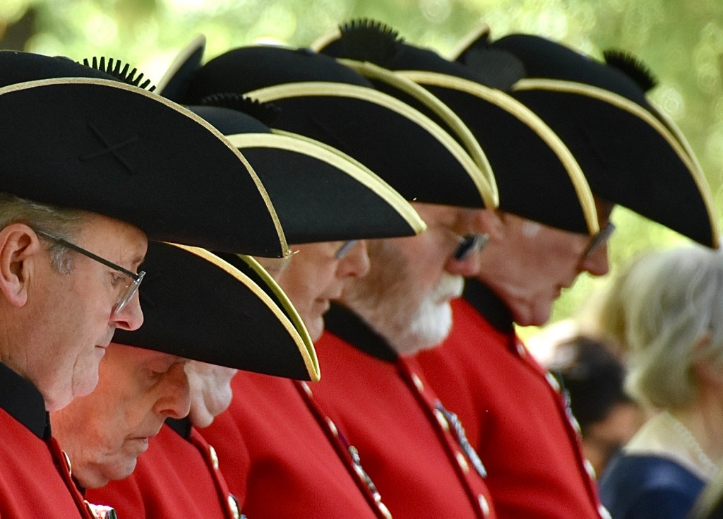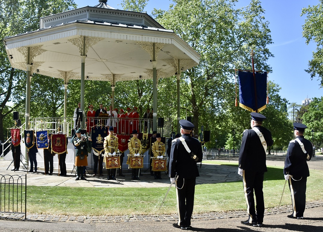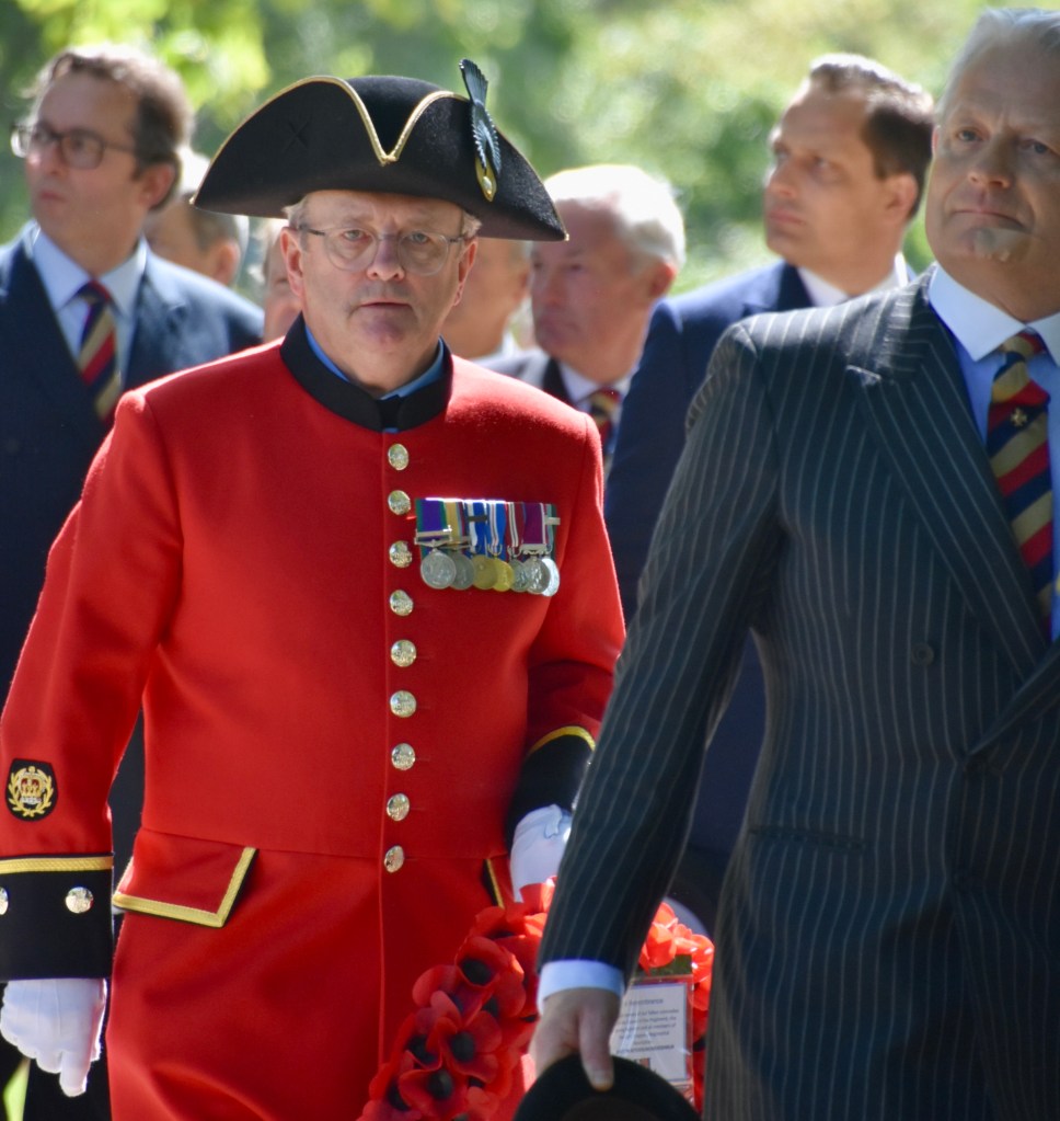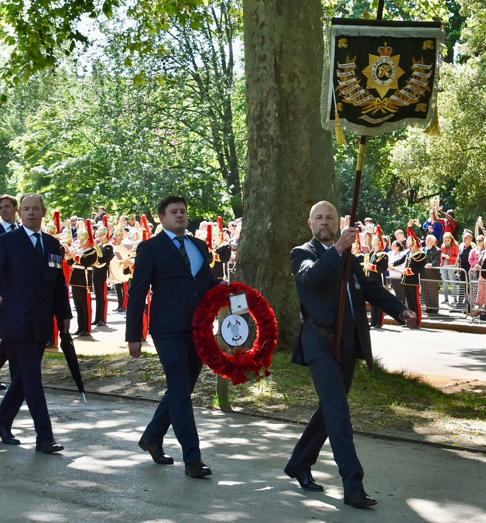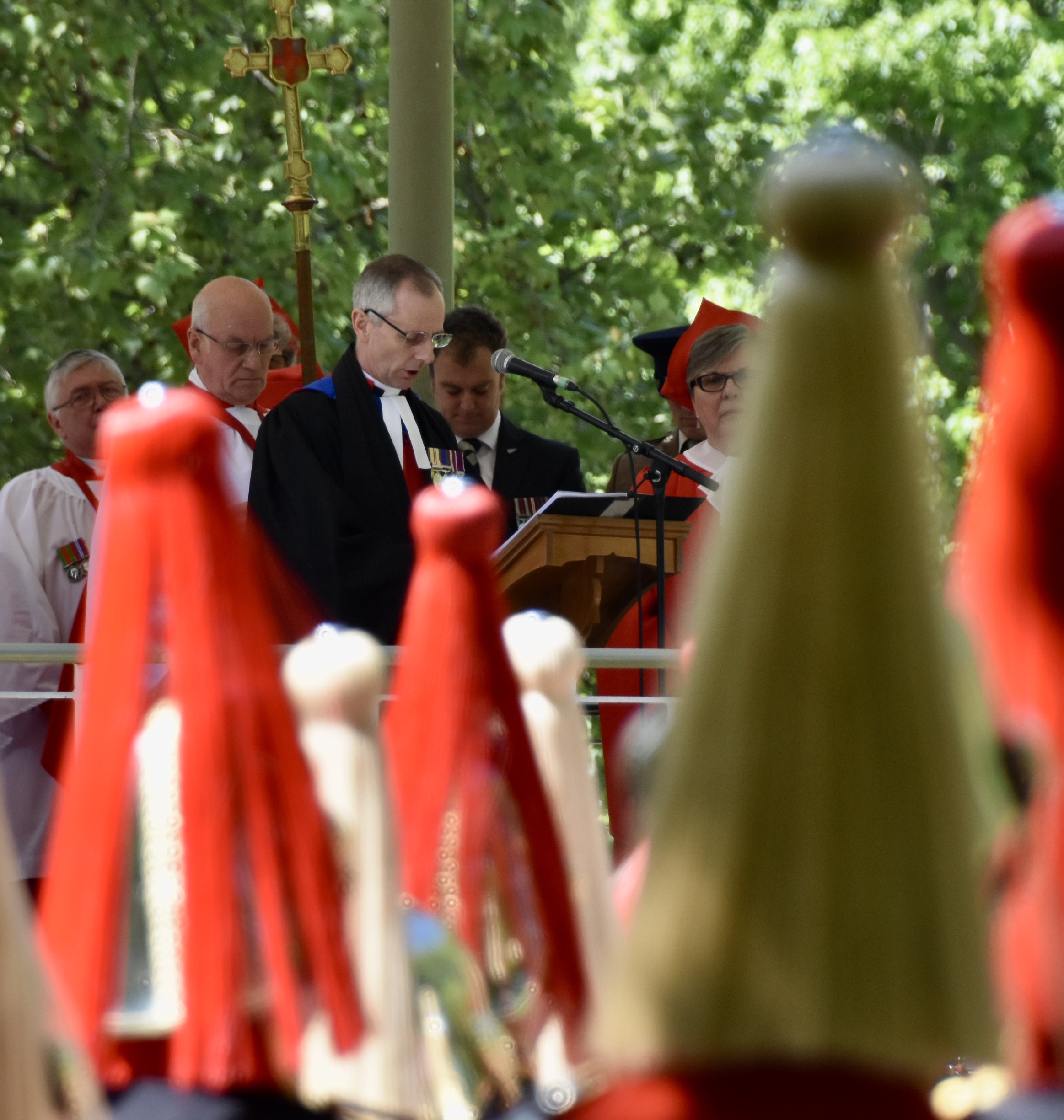 The Life Guards are followed by the Blues and Royals. They are the senior regular regiments in the British Army, with traditions dating from 1661.When passing the saluting base and memorial, the command “eyes right” is given and civilian hats are removed. Once passed the saluting base it is “eyes front” and hats are replaced.The Royal Scots Dragoon Guards. Their banner is topped with a representation of the French Imperial Eagle that the Royal Scots Greys captured at the Battle of Waterloo in 1815. The eagle also forms the cap badge which is worn with a black backing in mourning for the last Tsar, Nicholas II, who was Colonel-in-Chief of the Royal Scots Greys at the time of his execution. The Royal Dragoon Guards. Amongst their traditions is Oates’ Sunday. Captain Oates, of the 6th Inniskilling Dragoons, became a legendary figure when, as a member of Scott’s ill-fated Antarctic Expedition of 1912, he chose to sacrifice himself rather than impede the progress of his comrades.Prince Edward takes the salute. To his left are representatives of the armed forces of New Zealand and South Africa.The Queen’s Royal Hussars. They are the only regiment to sing their regimental quick march as they pass the saluting base: I’m a soldier in the Queen’s Army / I’m a galloping Queen’s Hussar / I’ve sailed the ocean wide and blue / I’m a chap who knows a thing or two / Been in many a tight corner / Shown the enemy who we are / I can ride a horse / Go on a spree / Or sing a comic song / And that denotes a Queen’s Hussar.The Royal Lancers’ “Death or Glory” badge or “motto” is an uncharacteristically fierce piece of British Army heraldry. Its origins are with the 17th Lancers who were one of the regiments in the 1854 Charge of the Light Brigade.Royal Lancers “hats off.”The King’s Royal Hussars. On mess nights, the officers drink from a silver chamber pot that once belonged to King Joseph Bonaparte and had been a gift from his brother, the Emperor Napoleon. It was taken as a prize of war in 1813.A Chelsea Pensioner marching with the Light Dragoons. It is worrying when such people begin to look relatively young.The Royal Wessex Yeomanry, this year’s organising regiment.Although its predecessors go back hundreds of years, The Scottish and North Irish Yeomanry is the Army’s newest combat regiment.The Middlesex Yeomanry bring up the rear.Prince Edward lays the wreath on behalf of the Combined Cavalry Old Comrades Association.Prince Edward (centre) walks from the saluting base to the nearby memorial service. On the left is Lieutenant-General Sir William Rollo, President of the Old Comrades. On the right is the Association’s Vice-Patron, General Sir Richard Shirreff. Sir Richard is a former Deputy Supreme Allied Commander Europe and, in 2016, published a book titled, 2017: War With Russia. An Urgent Warning from Senior Military Command. Perhaps it is time for a second edition?The Memorial Service was conducted from the bandstand in Hyde Park.Some members of the Household Cavalry at the bandstand service.The service was conducted by the Chaplain-General, The Reverend Michael Parker.A Lance Guard of The Royal Lancers.The Memorial Service included a reading of Laurence Binyon’s “For the Fallen” (1914) which includes the famous lines, “They shall not grow old as we that are left grow old…”