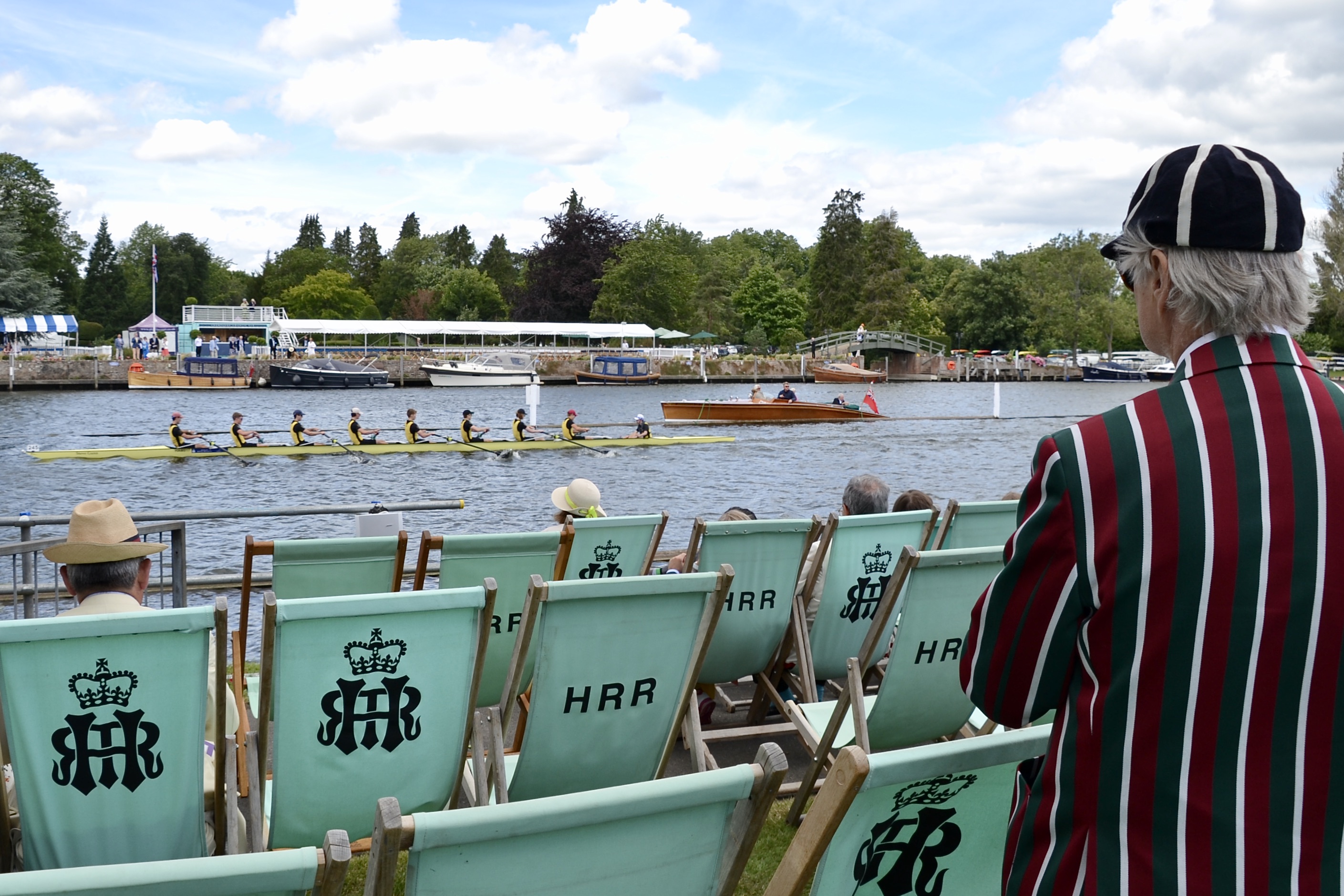 My main concern was to check that no pizzas were on sale in the Stewards’ Enclosure (as was the case in last year’s COVID compliant Henley Lite), that the course was straight and that the Stewards were properly dressed. I took the pictures posted here as evidence of this and I hope (but do not promise) to put up more on every day of the regatta. As usual, these will be short on time consuming text.