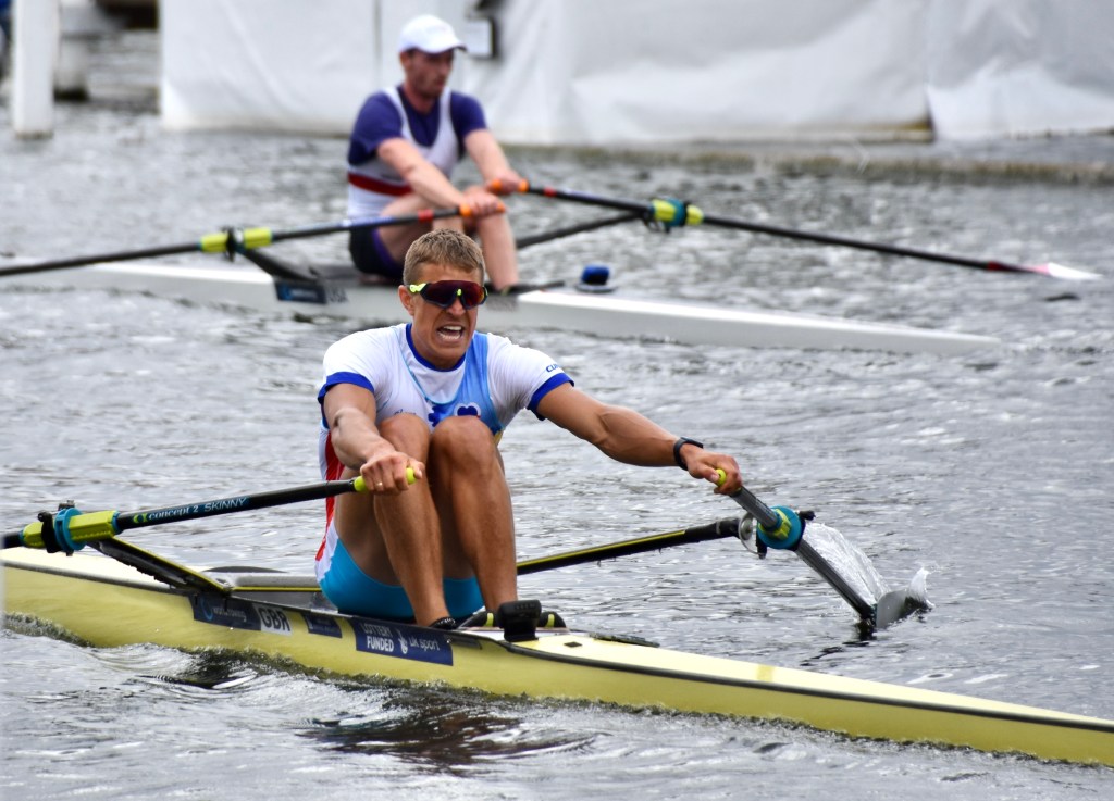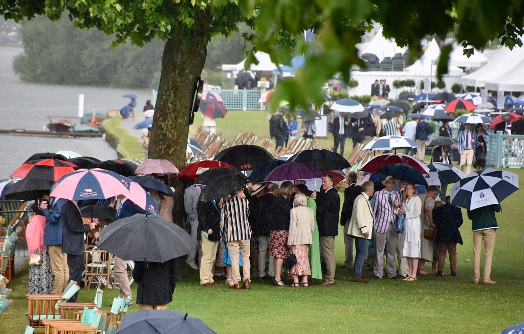 Two spectators braving a downpour to watch Molly Harding of Molesey row over following the disappointing news that her opponent, Emma Twigg, the New Zealand Olympic champion, had withdrawn from The Princess Royal (Women’s Single Sculls) for medical reasons. Twigg won the event in 2009 and 2019 and had been the favourite for this year.