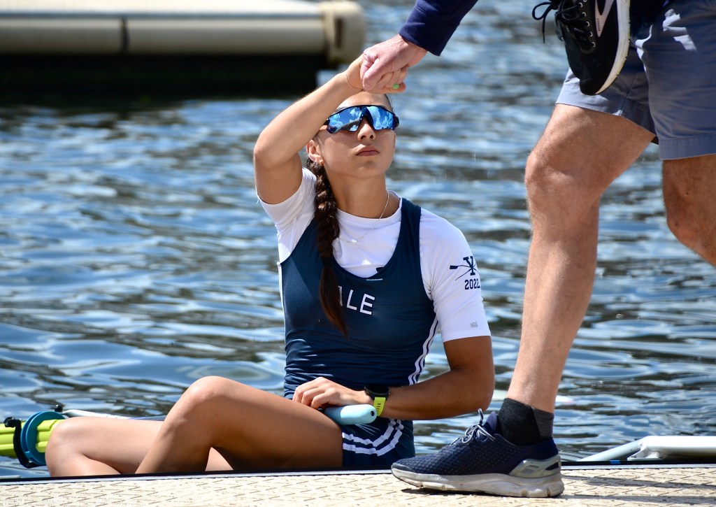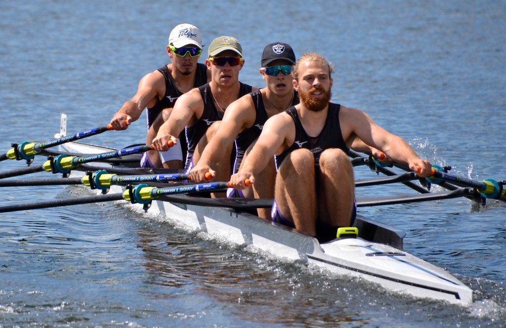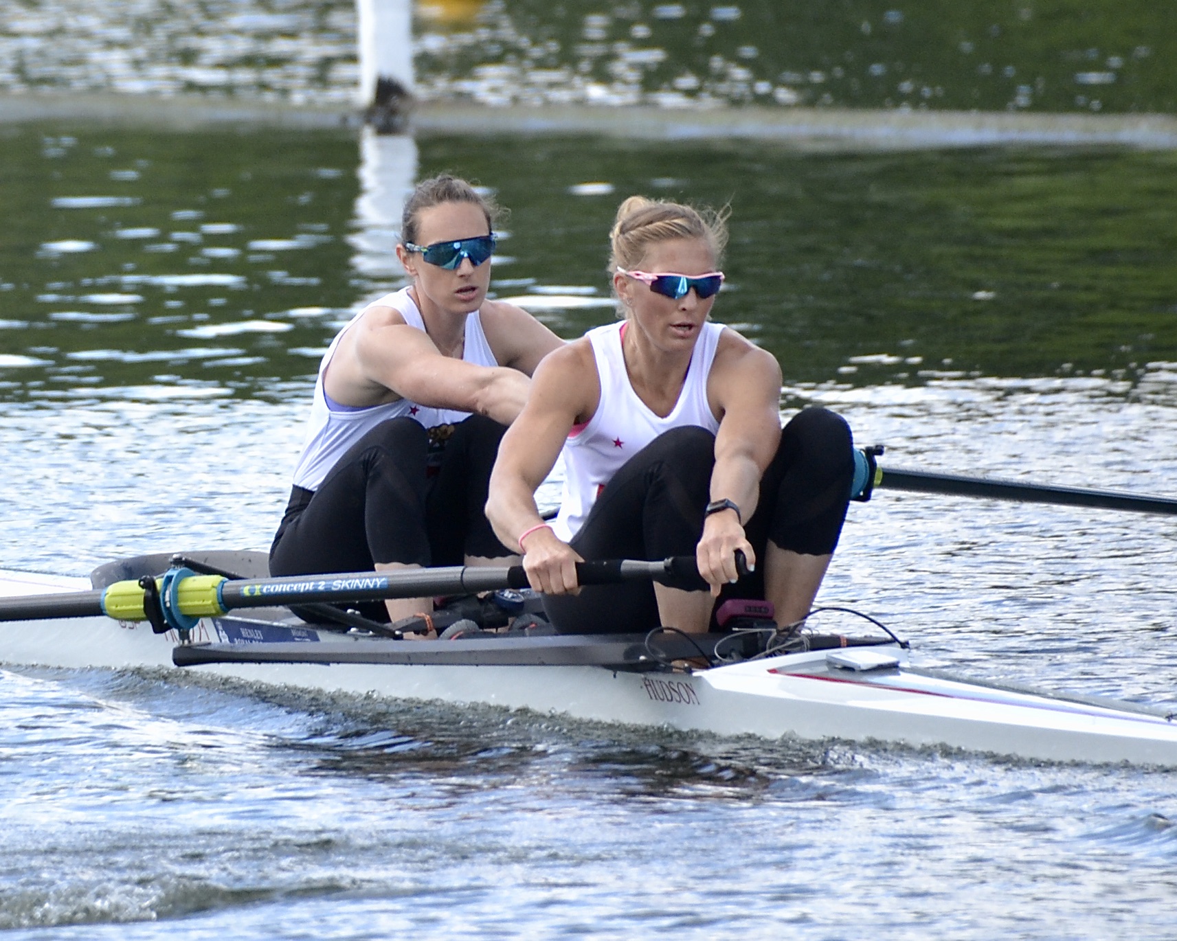 The USA-Australian pair of Meghan Musnicki and Jessica Morrison (California Rowing Club), put on an Olympic pairs masterclass for their young Leander Club opponents. They were 2 ½ lengths up by the Barrier (2:20) and rowed away to win easily. Australia’s Morrison won gold in the Women’s Coxless Four in Tokyo. USA’s Musnicki is a two-time Olympic gold medallist (London and Rio) and five-time World Champion.