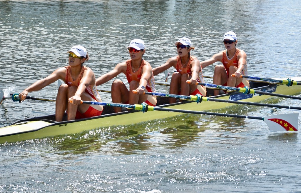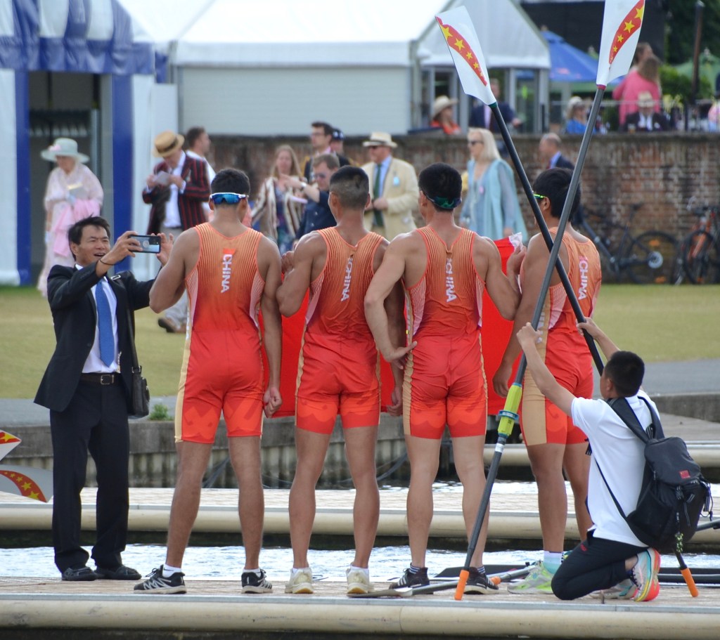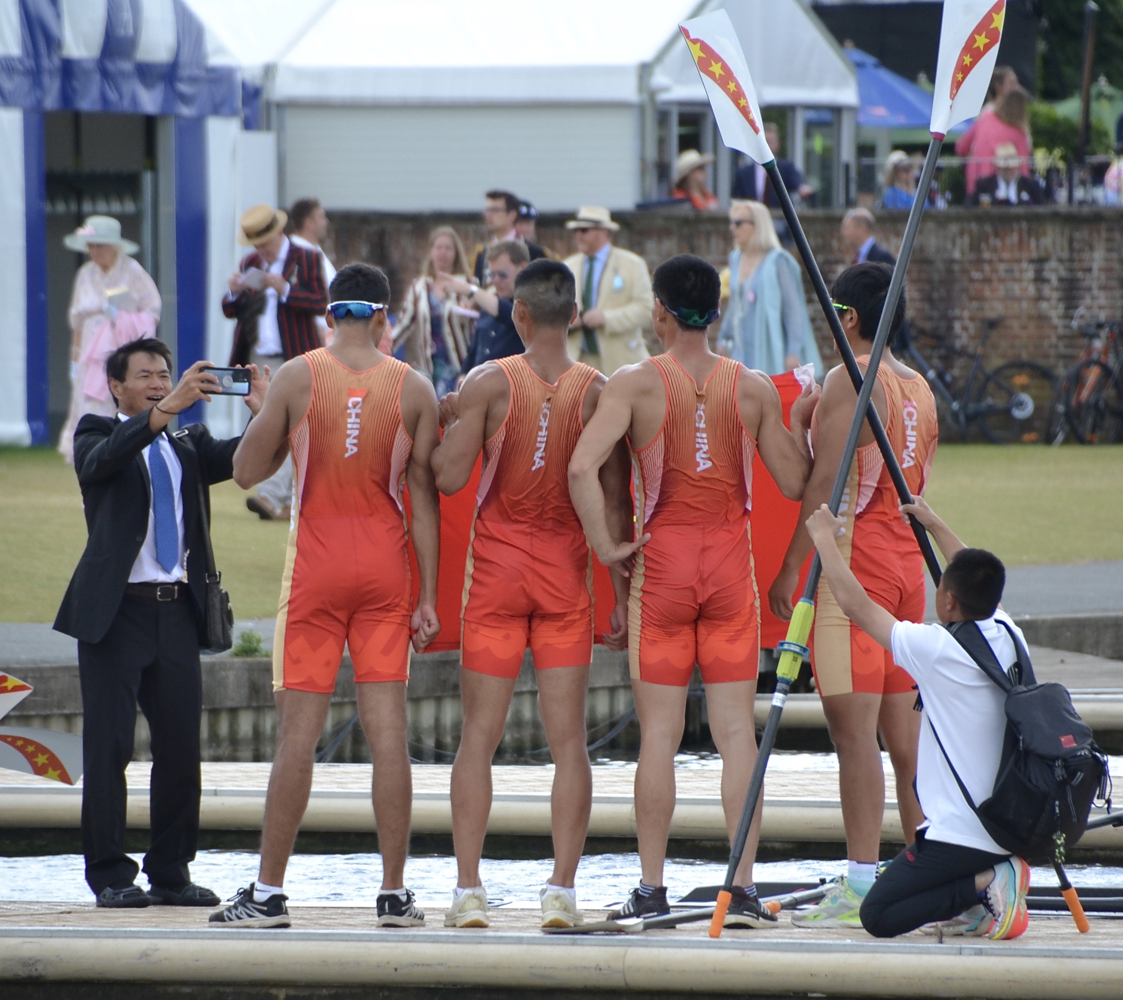 The Chinese quad was 1 ½ lengths up at Barrier (1:51), 2 ½ up by Fawley and then held and controlled to the line, responding to each attack before they had made an impression.