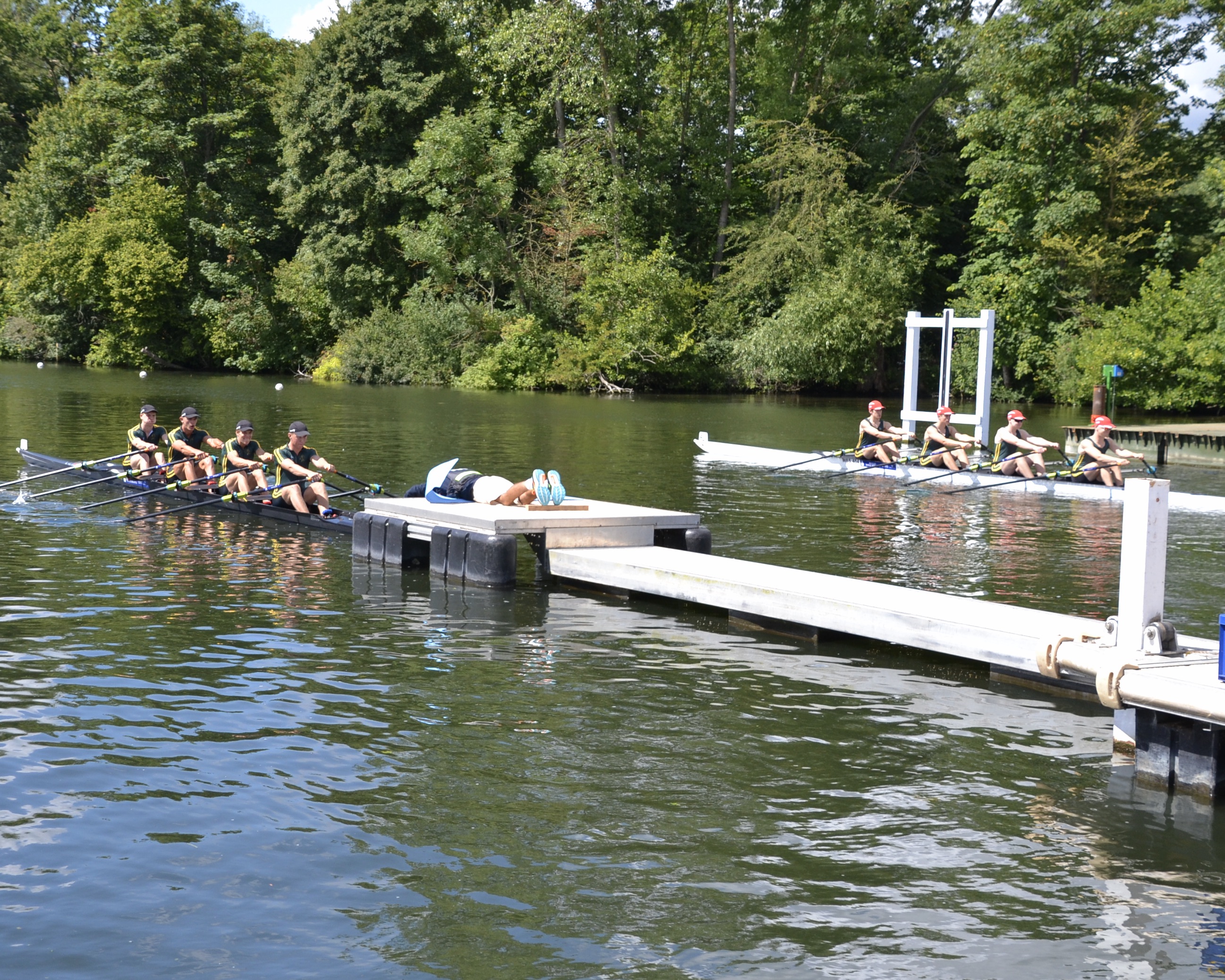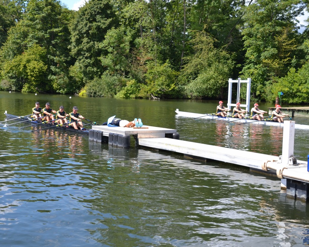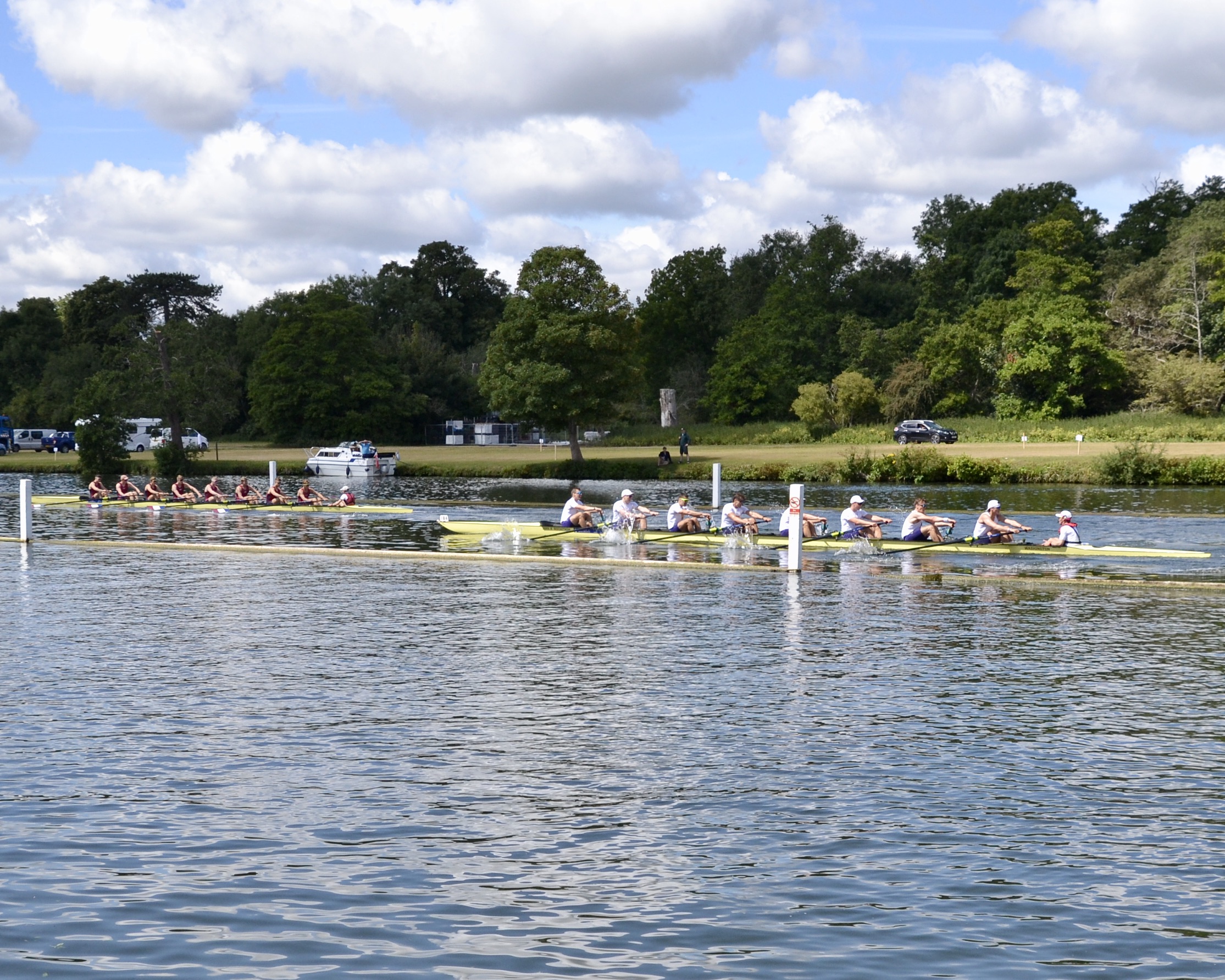 Windsor Boys’ School were guaranteed victory in the The Fawley Challenge Cup and their ‘A’ boat showed their class, winning from the front. They were two lengths clear at Barrier (1:59 – which both boats had managed on Friday, but the ‘B’ boat could not reproduce today). Windsor Boys’, the winners in 2017 and 2018 and losing finalists last year, have been unbeatable this year and showed the awesome strength of their squad by dominating both sides of the draw.