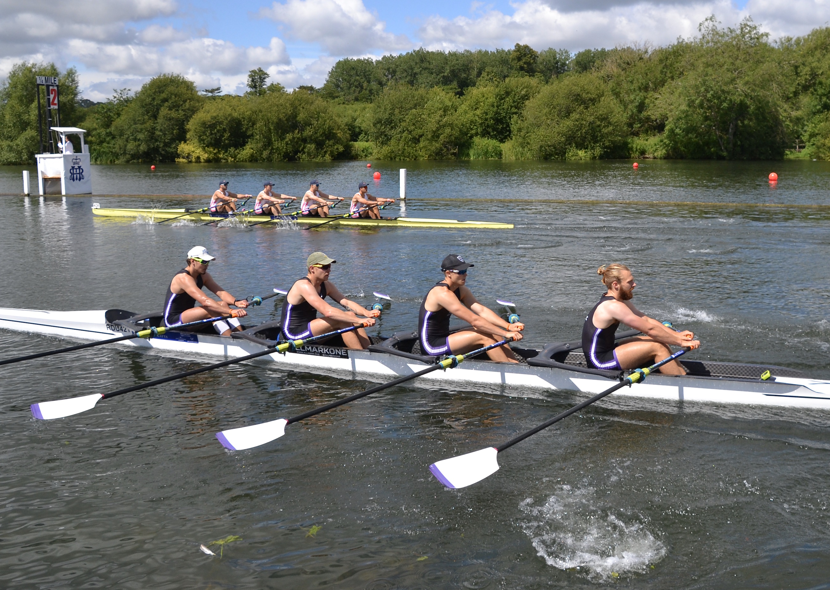 Leander Club won the first of their five finals with a commanding win over Reading University ‘A’ in The Prince of Wales Challenge Cup. Leander were 1¼ lengths up at Barrier (1:54) and stretched the lead to over five lengths. Reading may have spent themselves on Saturday in their surprise semi-final comeback win.