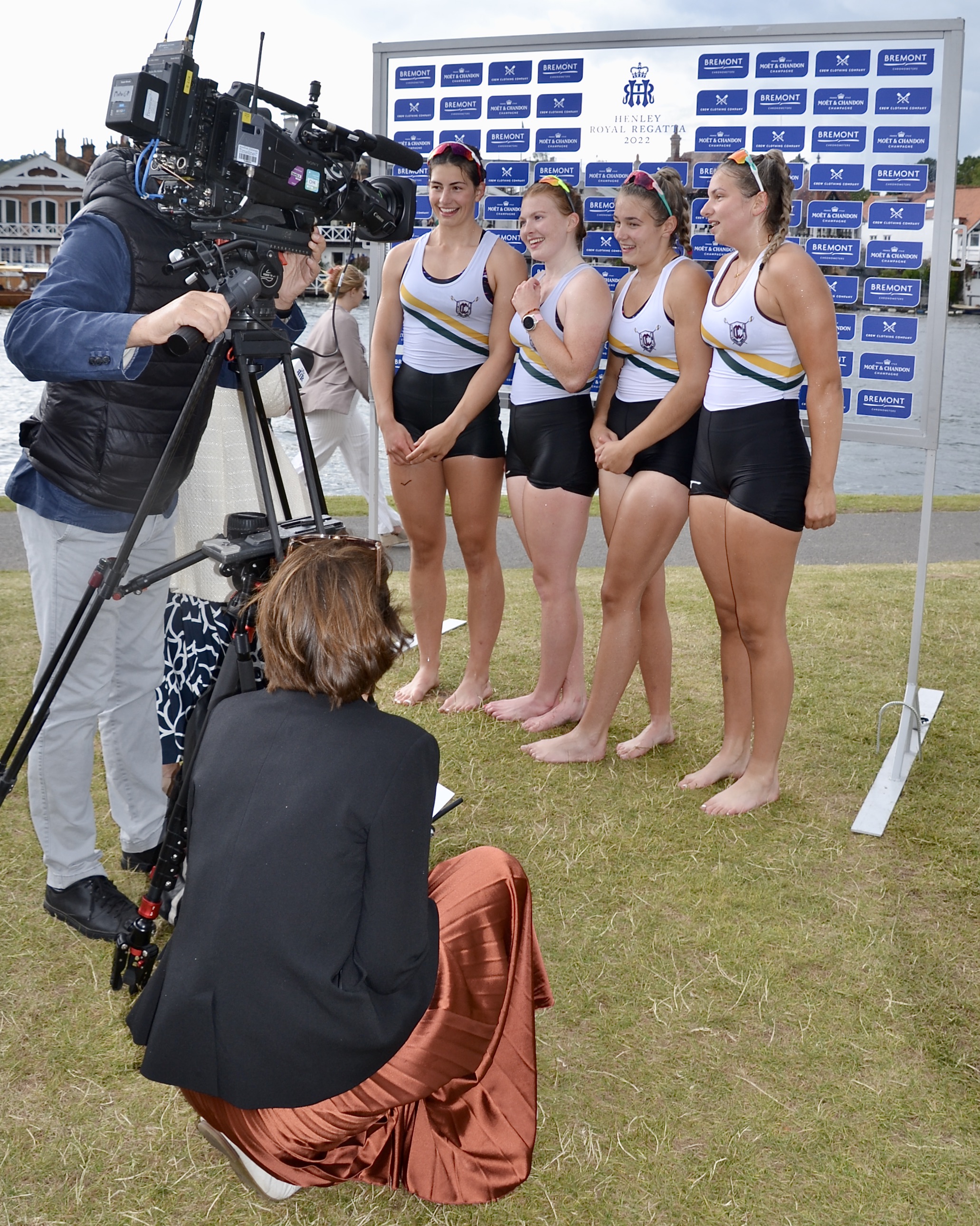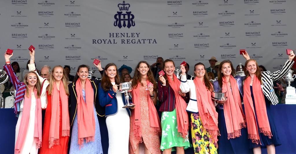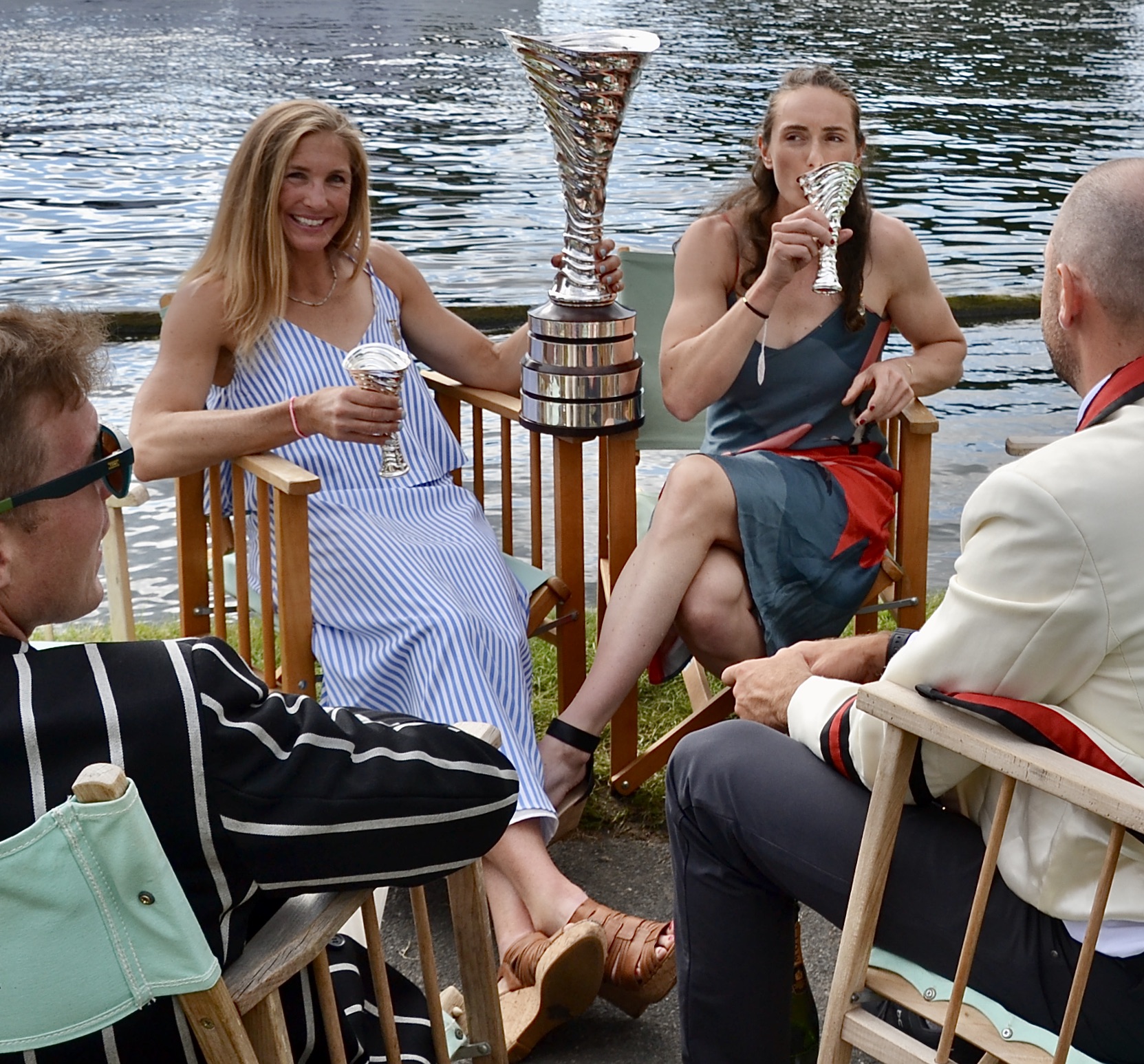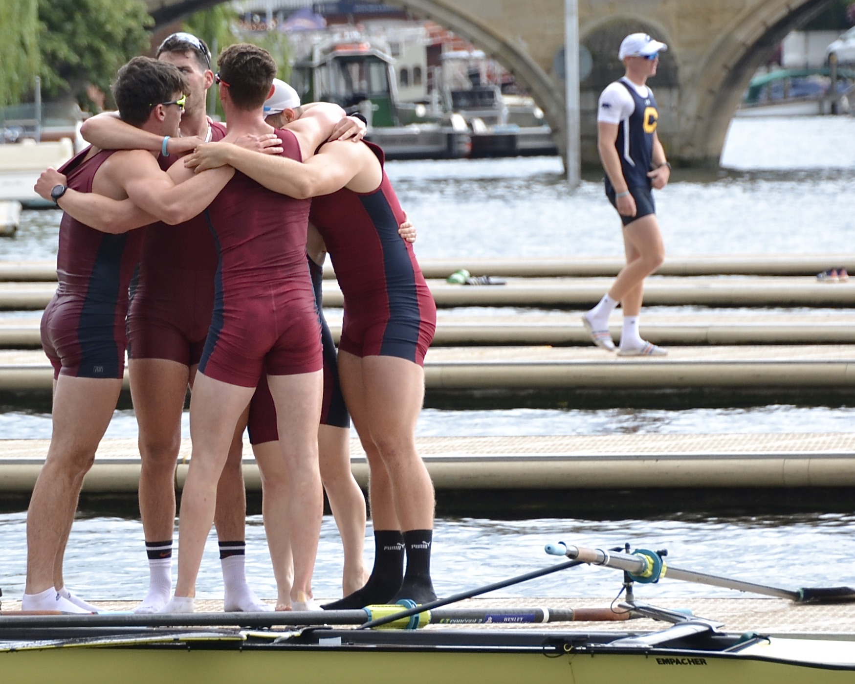 Twenty minutes after the Grand, Leander Club put their name on the next fastest eight event, The Ladies’ Challenge Plate for the first time since 2016 by beating many people’s favourites, University of California, Berkeley. Leander led the Golden Bears from start to finish. They were ½ length up at Barrier (1:45) and steadily extended through the course to win by a length. The relatively comfortable win was a surprise because Cal started the week as hot favourites after a dominant season and emphatic win at the Intercollegiate Rowing Association National Championships at the beginning of June.