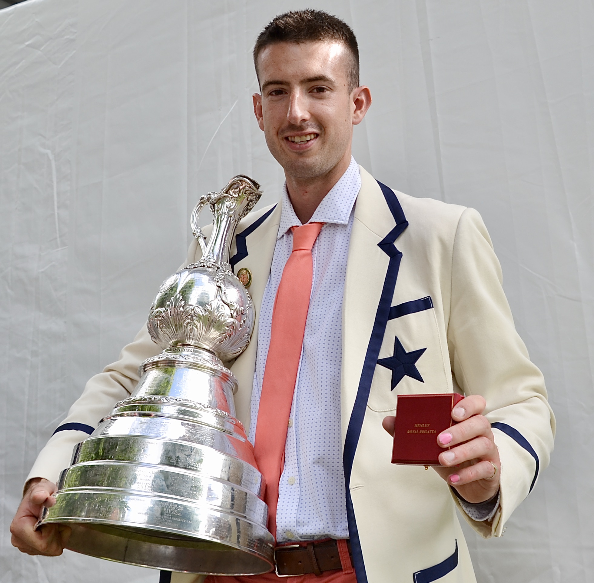 Oxford Brookes University ‘A’ won The Prince Albert Challenge Cup inflicting a second defeat on University of California, Berkeley, USA, in the space of twenty minutes. Cal led by a length at Barrier (1:59) but Brookes started remorselessly reeling them in from before Fawley, had taken the lead by Remenham and were ¾ length ahead at the Mile. They held Cal over the last quarter and were cheered through the Grandstand as they won by a length.