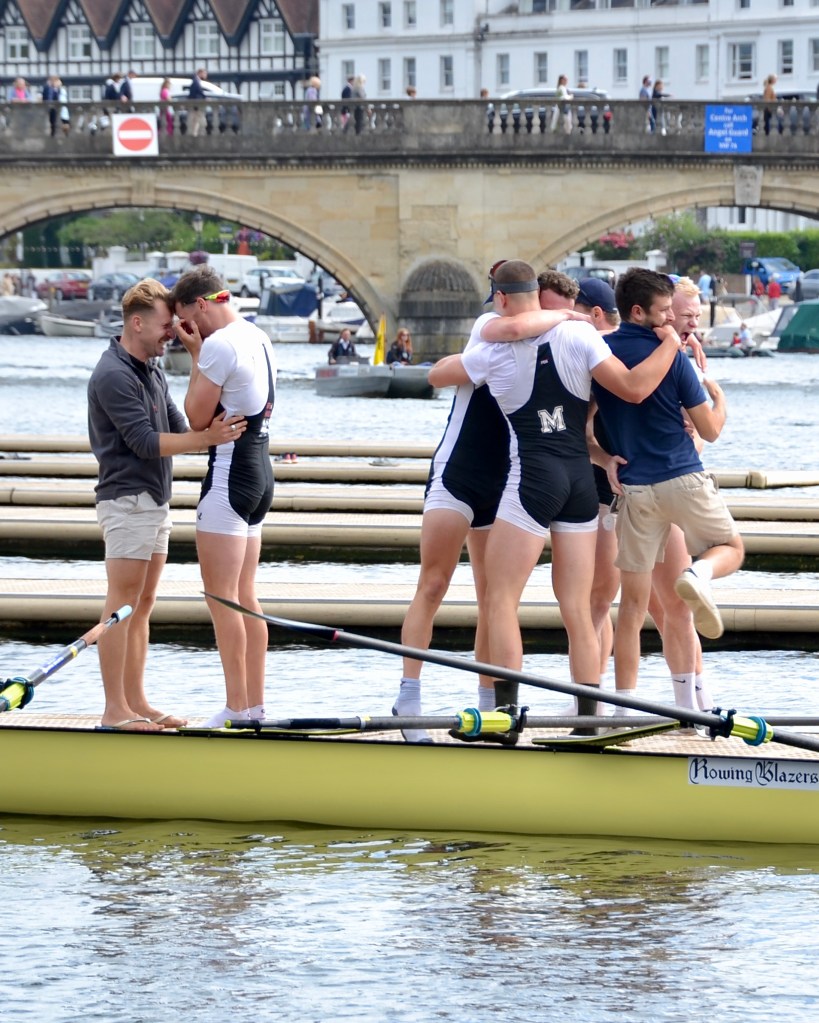 Molesey Boat Club gained revenge for defeat in the final of The Thames Challenge Cup last year to Thames Rowing Club in a tight race to close Finals Day. It was a first win for Molesey since 2016 and the first defeat for Thames in four finals. Thames led along Temple Island, but Molesey had drawn level by Barrier (1:46) and were ½ length by Fawley. Thames kept attacking but Molesey held them at bay.