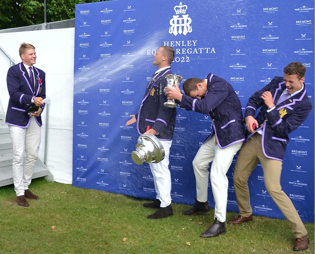 Claires Court backed up their incredible win over holder Shiplake College in their semi-final on Saturday by beating the unbeaten USA quad, the Redwood Scullers, to win The Diamond Jubilee Challenge Cup for the first time.