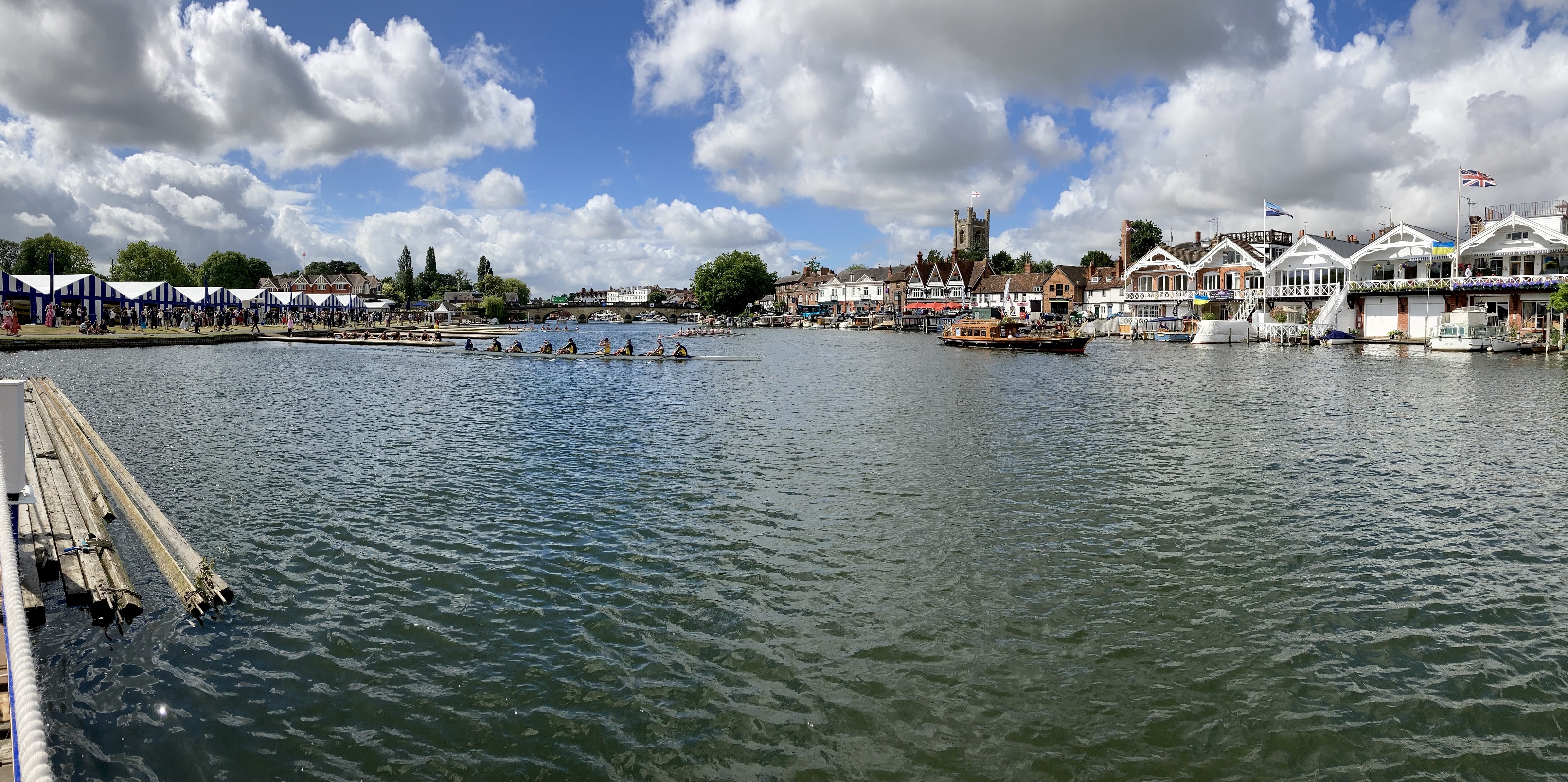 The total number of events is now twenty-six, and a sixth day of racing has been introduced to accommodate them. It’s a great success, say the Stewards: their regatta has attracted a record entry of 739 crews, rowed and sculled by thousands of rowers. It is also more visible, because a few years ago a sea change occurred when dawn ‘til dusk live drone coverage began on YouTube.
