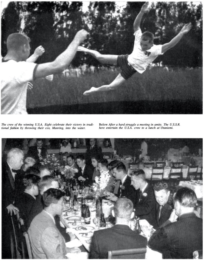 The organising committee were wary of Russians because Finland and the Soviet Union had been eye-balling each other and taking pot-shots for years. For this reason, they provided two Olympic athletes villages, one for East countries and one for West. This almost caused a diplomatic incident when the Soviet eight invited the American eight to lunch, and the American team management overreacted because the representative crew was Rusty Callow’s U.S. Naval Academy. The Navy defied the ban and, judging by the photographs in the River and Rowing Museum’s collection, a jolly good time was had by all. Evidentially more than tea was served.