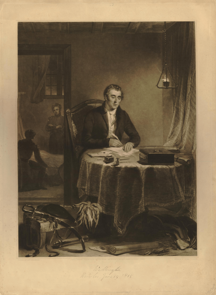 In the fashion of the day, the battle had been witnessed by many civilian spectators, and Wellington knew it was important that his news should be the first to reach London. He set about writing his dispatch, which was the official account of the battle, in a farmhouse on the battlefield in the early hours of the 19th of June. After breakfasting, Wellington proceeded to Brussels, where he finished the dispatch.