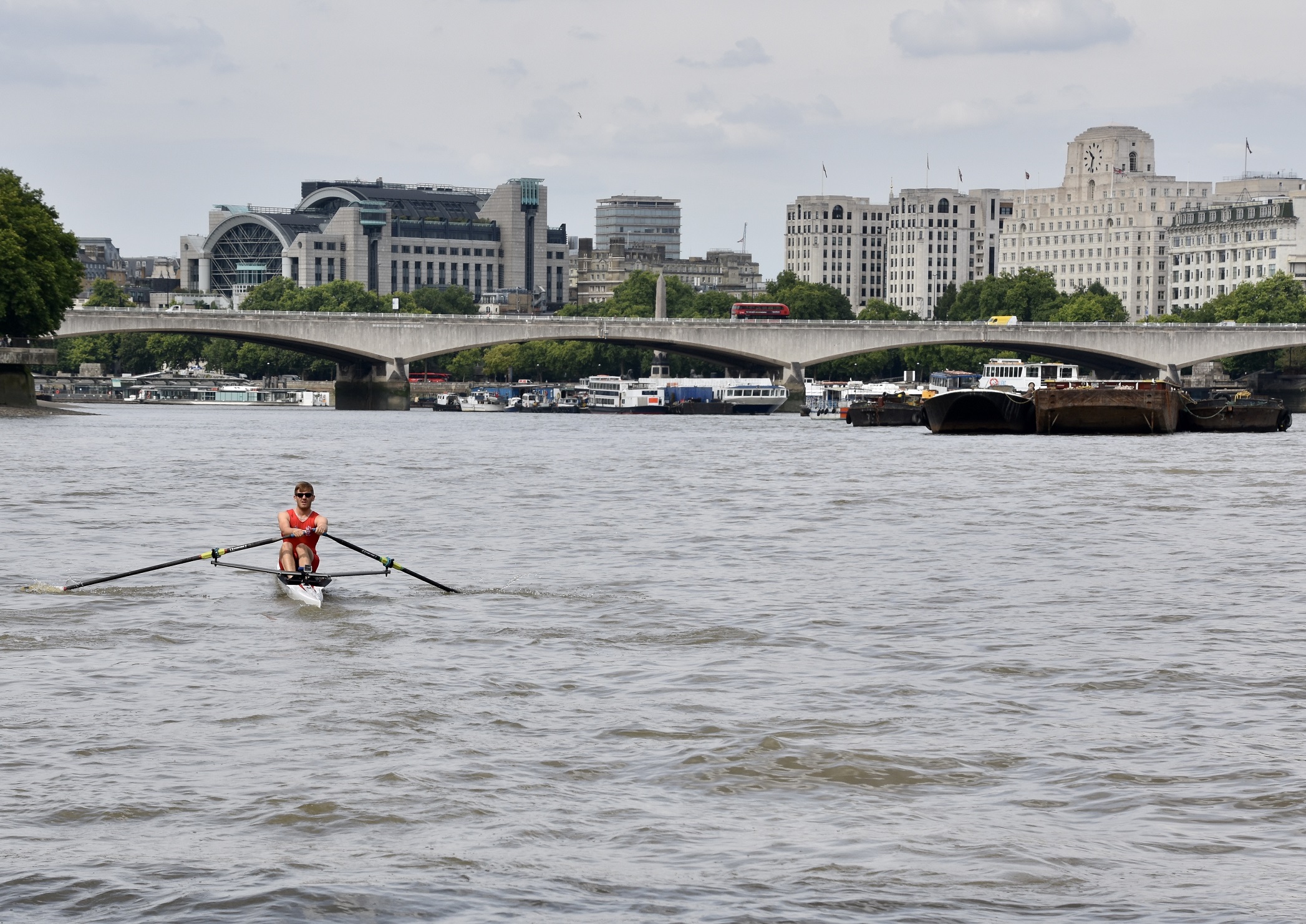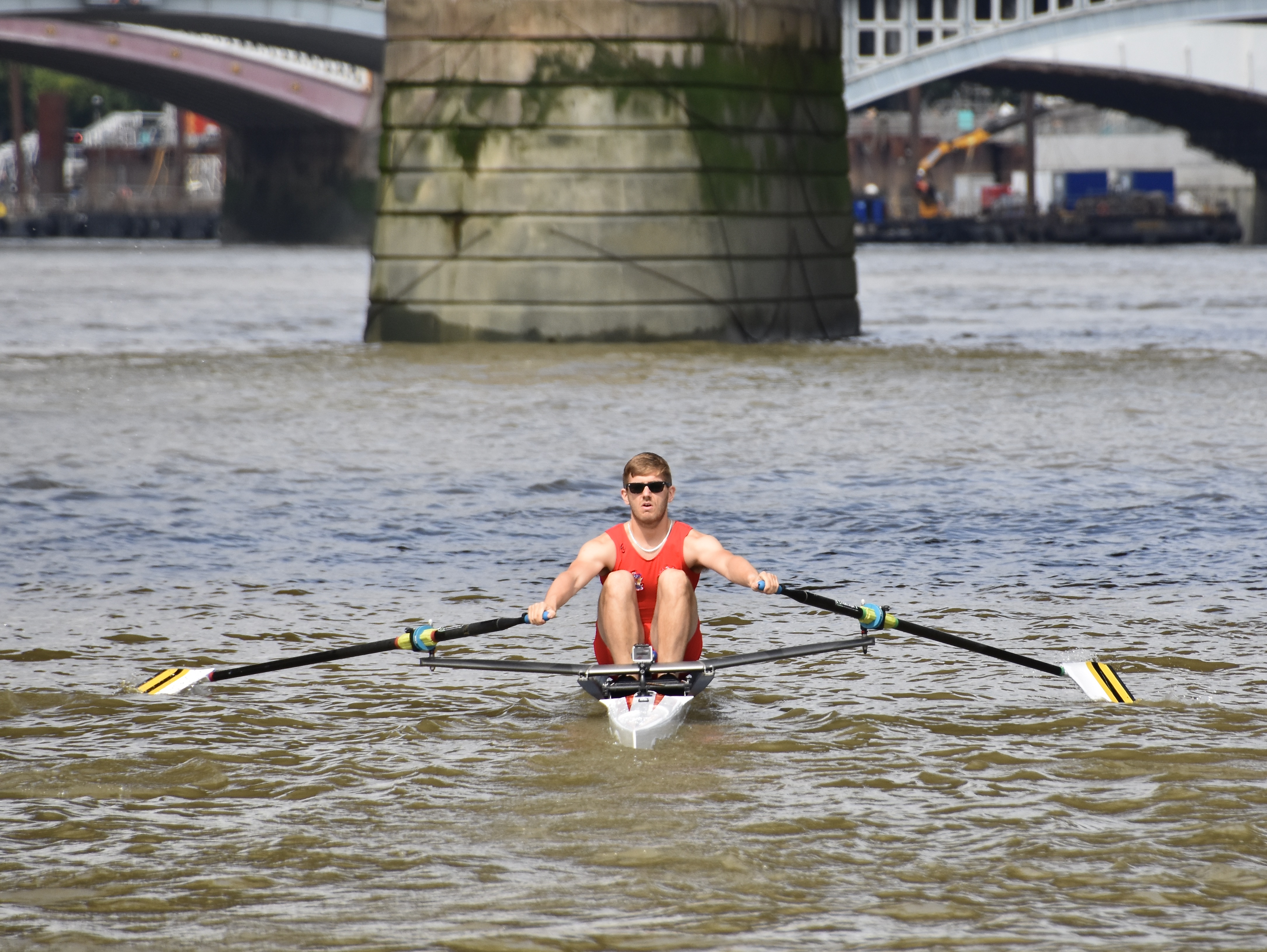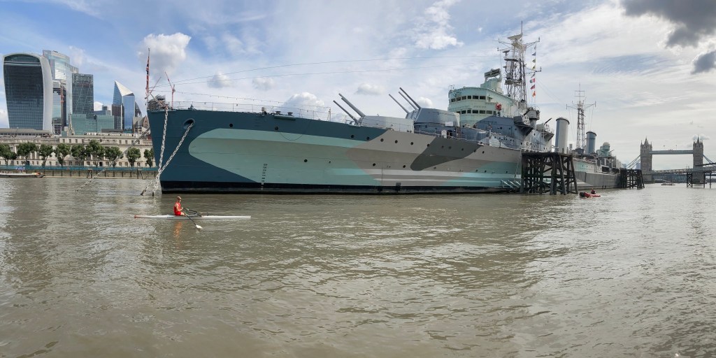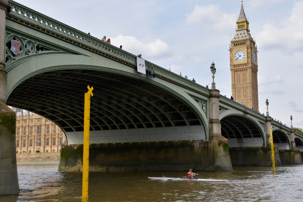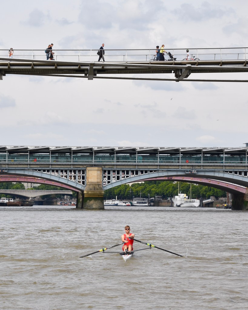 The hastily revised date also meant that the usual rolling river close was not in place – although the Port of London Authority was still managing the river and providing safety cover. Despite this, Gilbert was sculling on a busier river than has been seen in the race for many years.