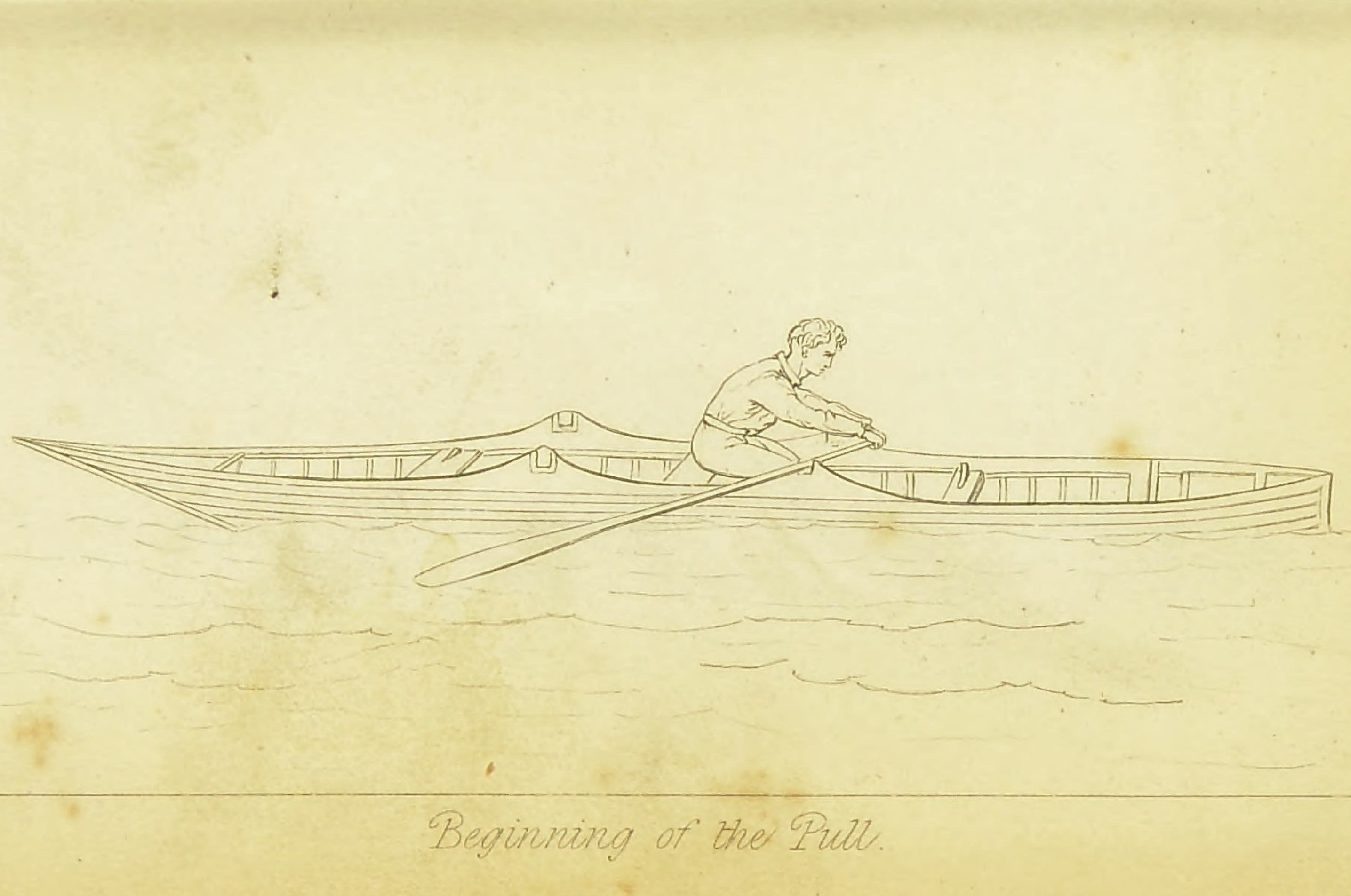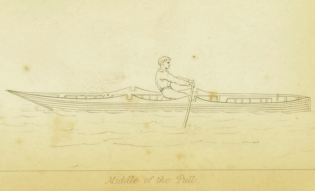 Published in 1834, Donald Walker’s, British Manly Exercises, may have included the first instructional text for oarsmen. The book was subtitled: In which rowing and sailing are now first described and riding and driving are for the first time given in a work of this kind.