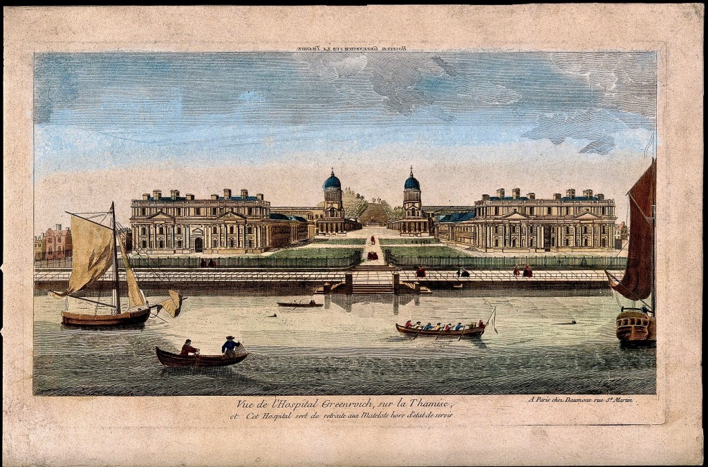A large number of the results from the search using the keyword “rowing” brings up views of the Royal Naval Hospital, Greenwich, London. The depictions of the building are much the same but there is a fascinating variety of river craft shown in each picture.