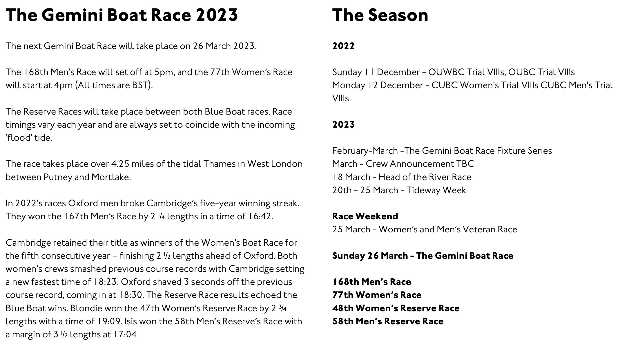 The Trial Eights are not contests of Light Blue v Dark Blue, they are men’s and women’s intra-university races with the probable last eighteen for each Blue Boat all hoping to impress the coaches with their performances competing over the Putney to Mortlake course.