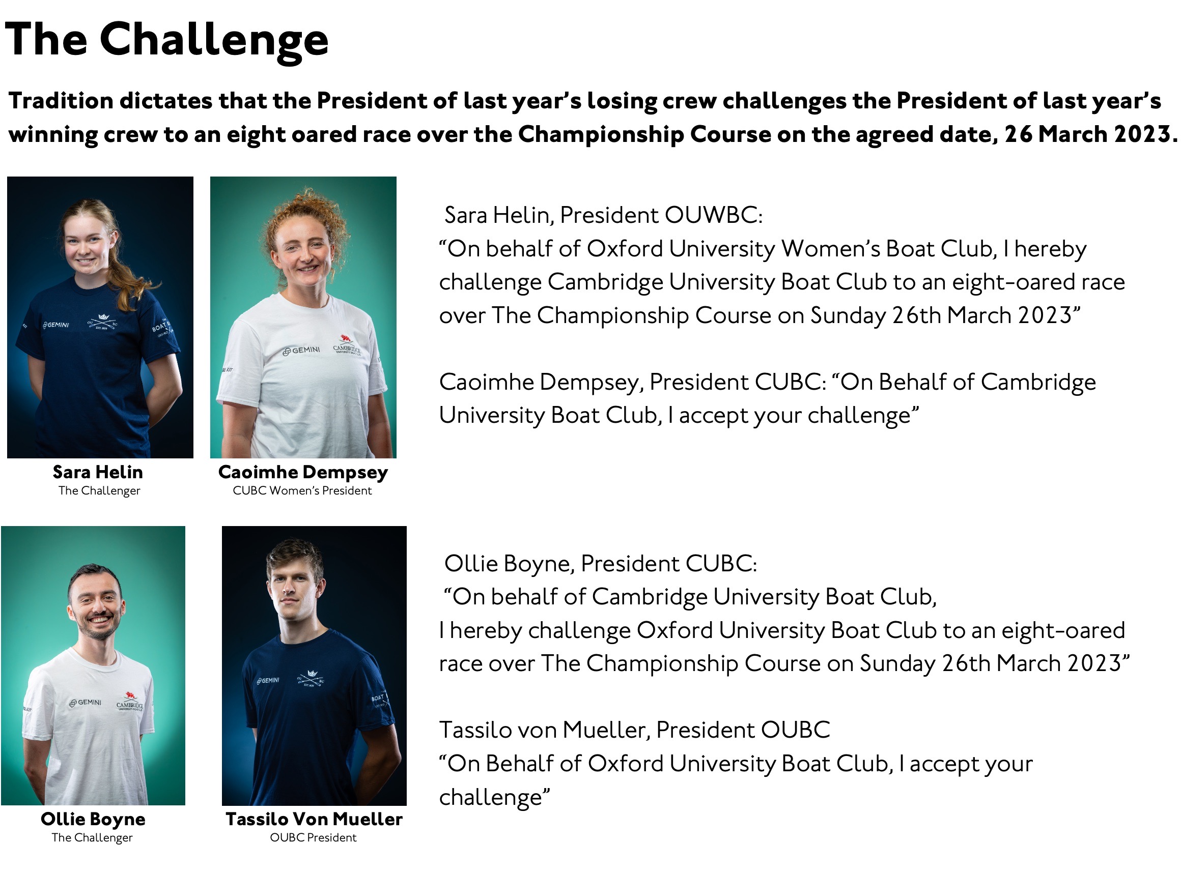 The 2023 Boat Race Launch Event incorporating The Presidents’ Challenge