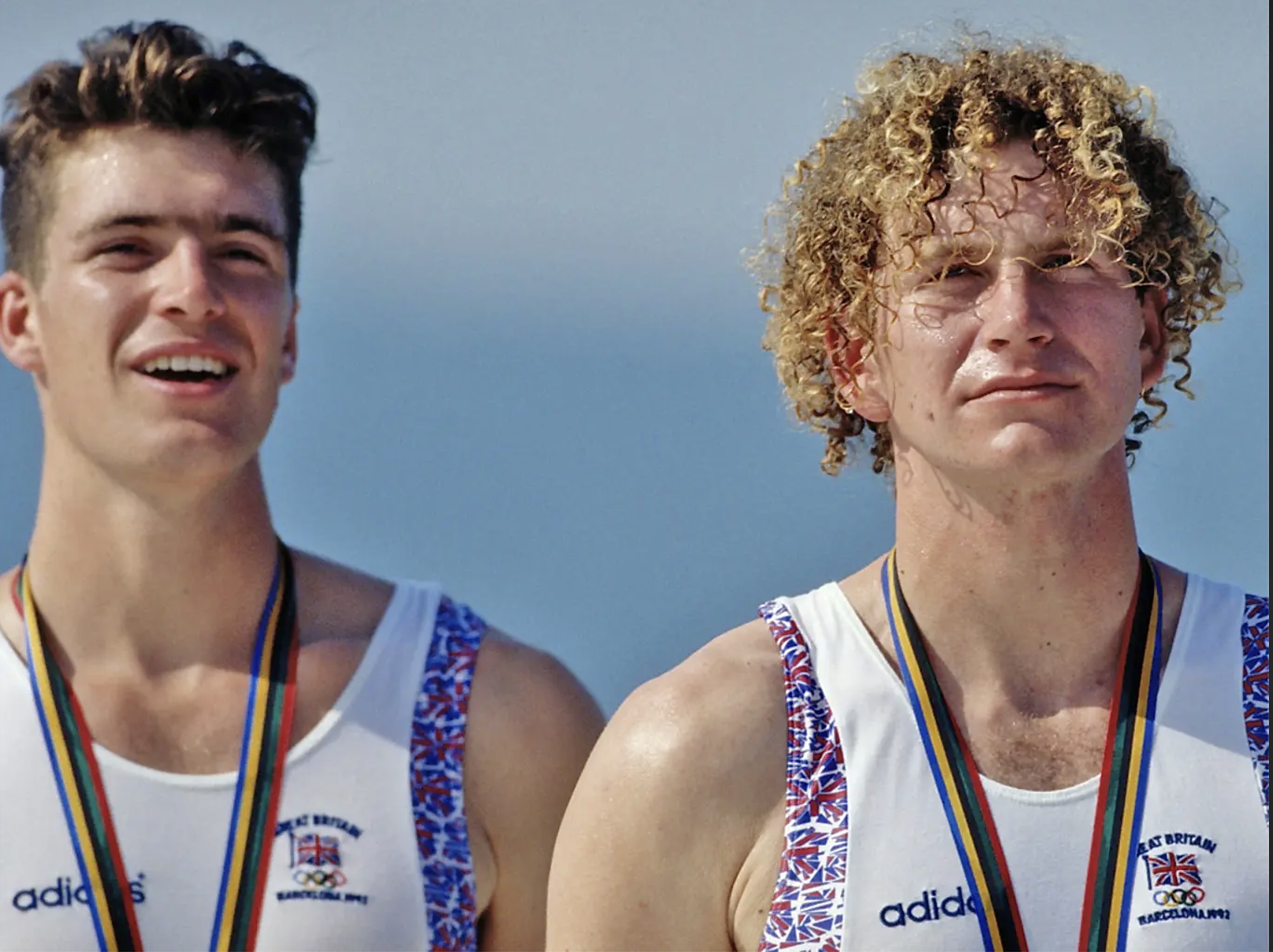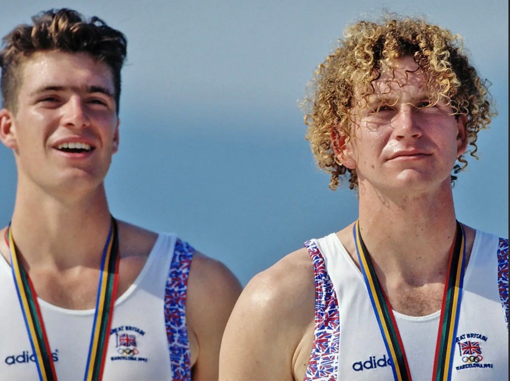 Greg (left) and Jonny Searle after receiving the Olympic Gold medal for winning the coxed pair at the Barcelona Games in 1992.