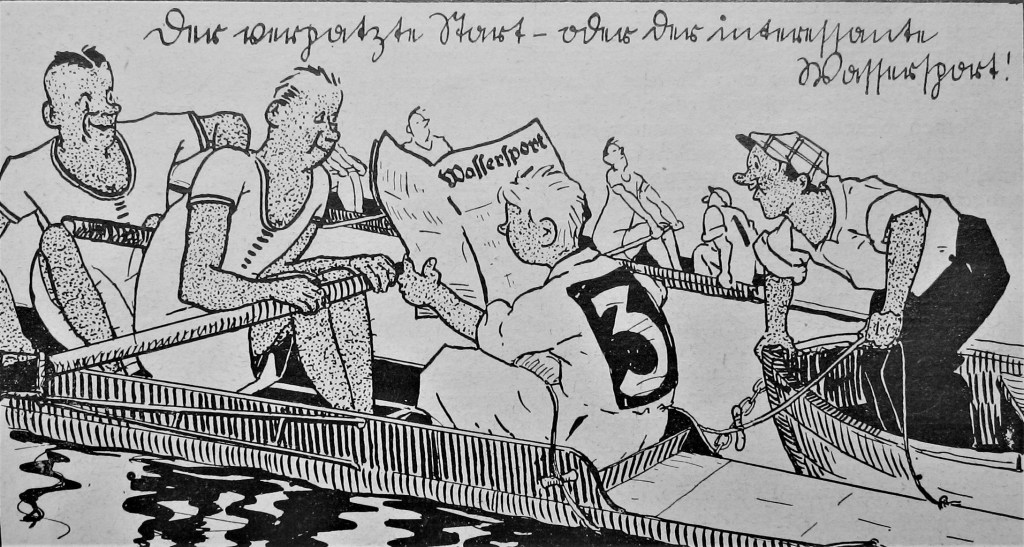 Debate as to whether the Orthodox style or Fairbairn’s method of rowing was best had divided the German rowing community. A major criticism by opponents of Fairbairnism, which was seen as more natural, was the curved back. An indignant rowing coach wrote to the DRV’s monthly journal, Wassersport, in 1935, “serious mistakes in posture are nothing but mistakes. This false idea, however, can be remedied.”