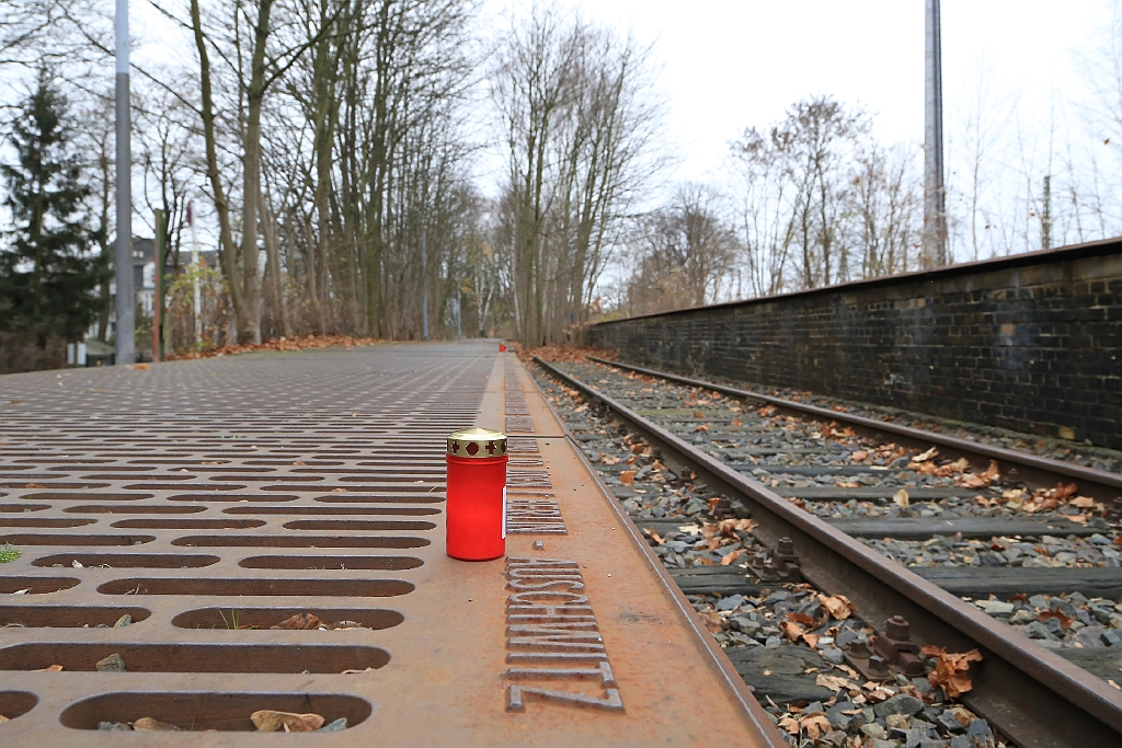 Platform 17 at the Grunewald Station, Berlin, was the principal location for deporting the city’s Jews to the camps of the East. In 1998, metal plates were inserted along the track at the now disused Platform 17, one for every transport train that left from there. Each plate includes the date, the number of people deported, and the destination. One marks Transport 29, 19 February 1943, the train that took Ernst to the gas chambers. Picture: fotoeins.com