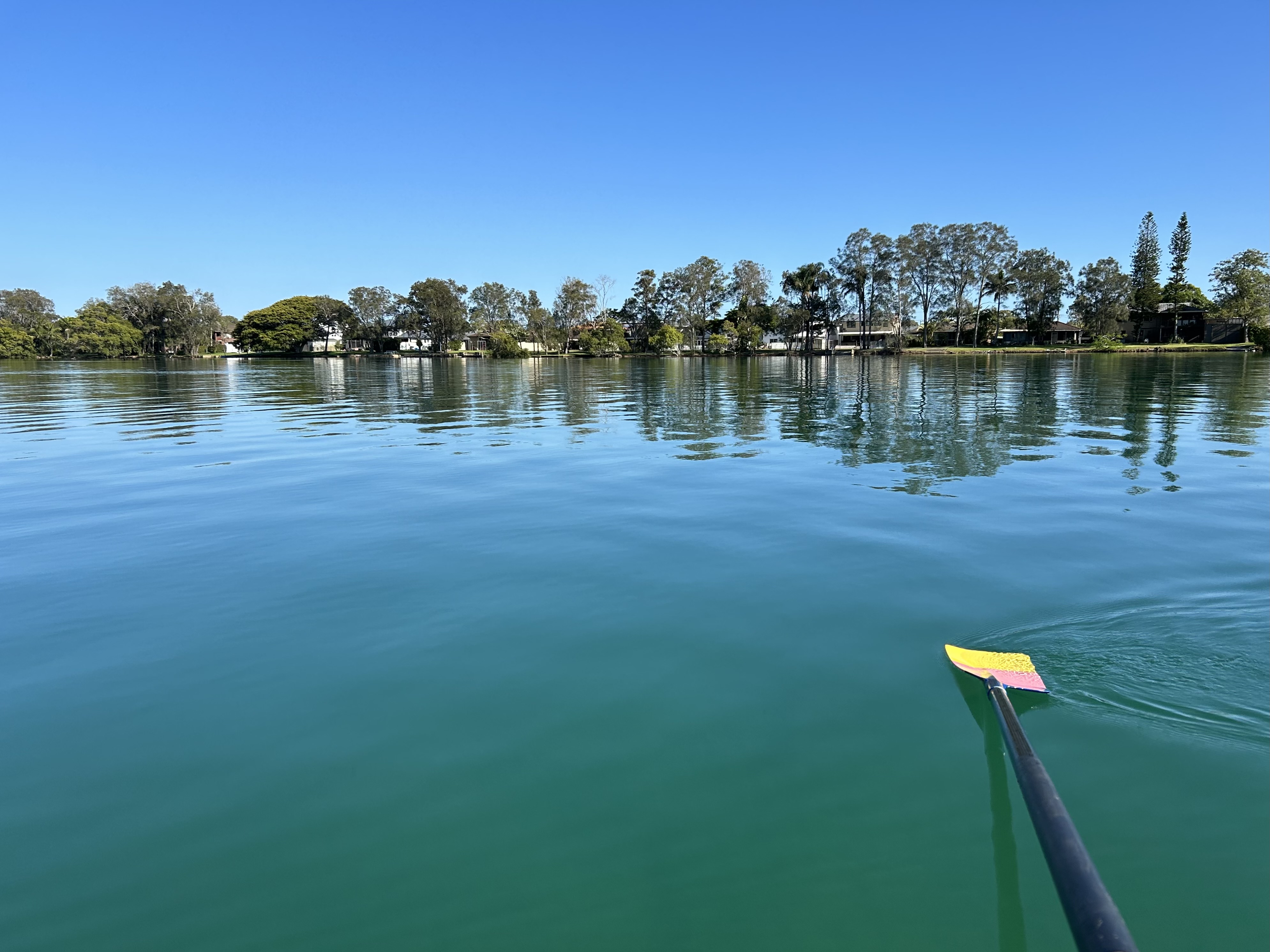 Most scullers turn after 5 km, although there are several more kilometres of water to enjoy in Terranora Broadwater should one be inclined.