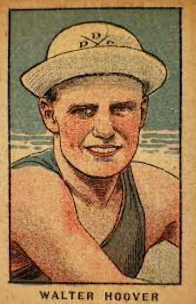 Caricaturist Fred May depicted Walter Hoover in two of his collections of Henley characters: 1922 and 1925. Hoover provided a sensation in the Diamond Sculls of both of those years – though only one resulted in a Pineapple Cup being taken back to the United States.