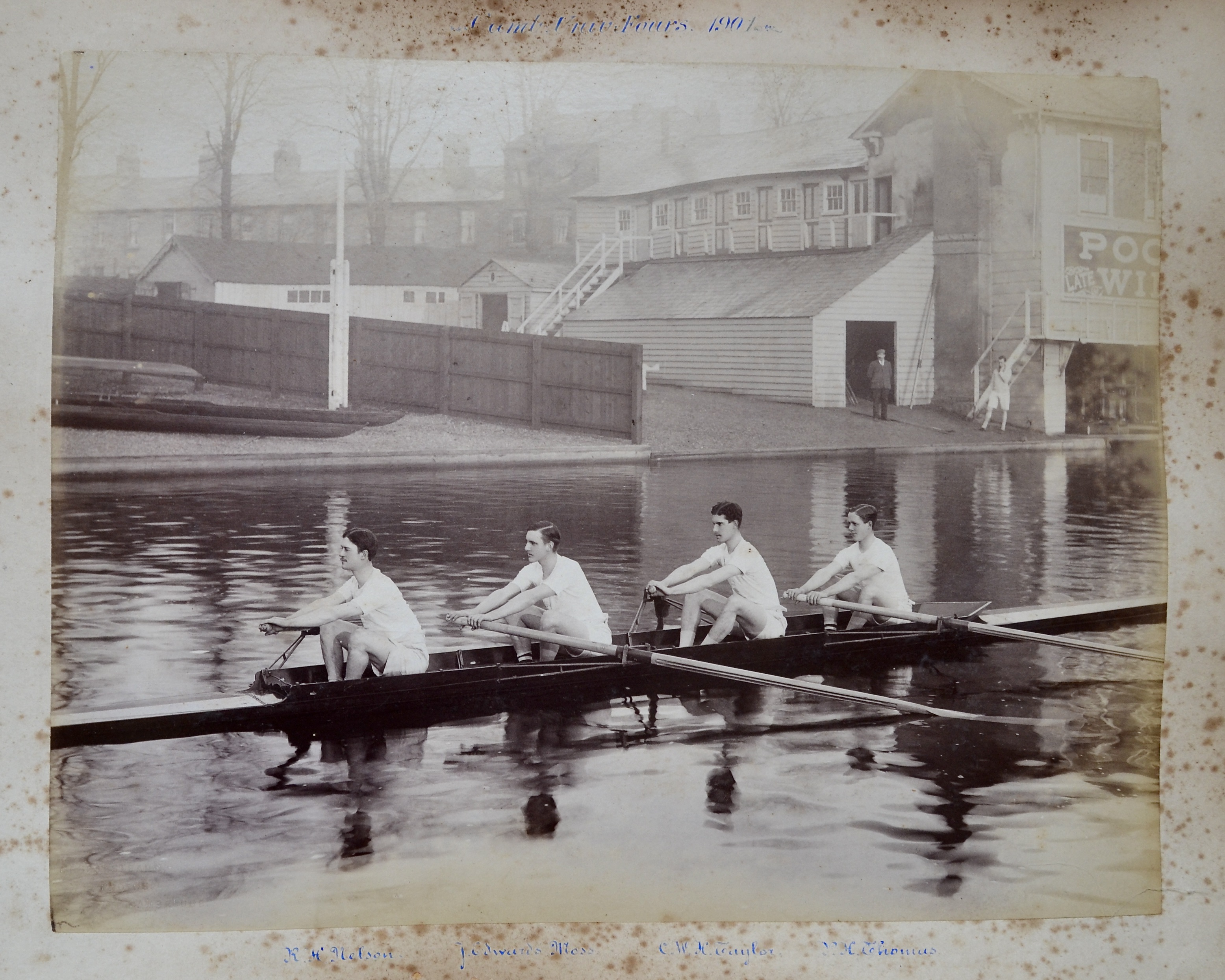 In November 2019, I met up with PHT’s grandson, Tony Haig Thomas, who holds his grandfather’s archive, including a splendid photo album that PHT had made recording his rowing achievements at Cambridge between 1901 and 1905. Tony allowed me to copy the sixty high-quality professional 4 inch x 5 inch plate camera photographs in the album but I subsequently reproduced only a few of them in my PHT biography. I now think it long overdue that the remaining photographs in PHT’s album are made public. The high resolution pictures capture a world that had little more than ten years left before it would change forever following The Great War.
