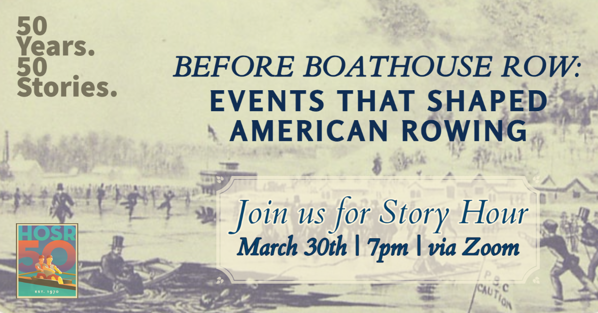 After the successful Zoom event “Preserving the History of Rowing, its People and Places” in February, the Committee of the Head of the Schuylkill Regatta (HOSR) invites those interested in rowing history to a second Zoom event on Thursday, 30 March, “Before Boathouse Row: Events that Shaped American Rowing”.