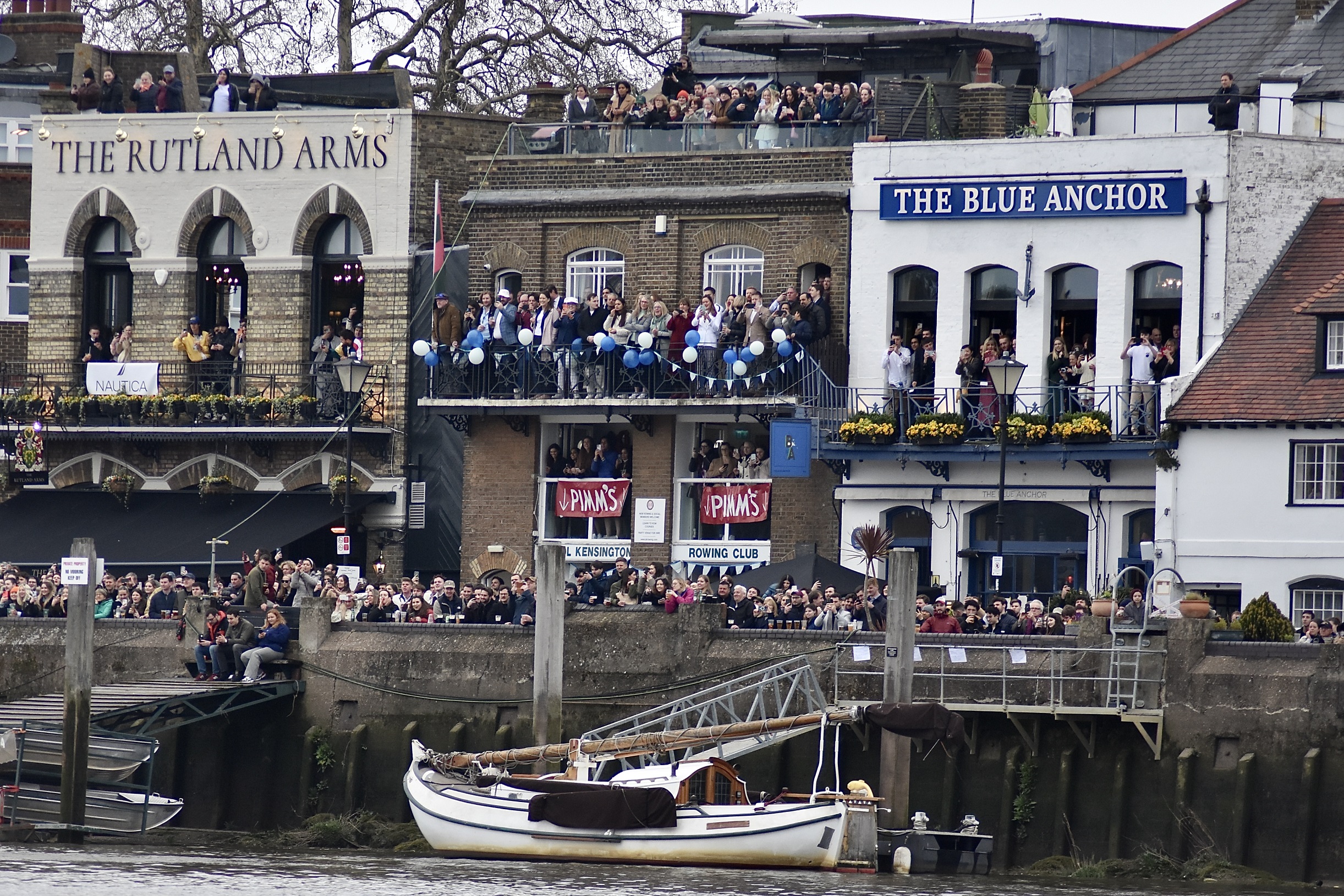 The 4.25 miles from Putney to Mortlake, aka the Championship Course, has bends and bridges, flood tides and ebb tides with a strong estuary-bound stream running under the tide, a drain for the Thames Valley’s land water; rough water and smooth; piers and pontoons; winds strong and weak, following, head, side and cross (sometimes all of them jostling boats in different phases of the same race); dashing launches chewed by lifesavers, police or coaches; rowing crews by the dozen and novice rowers by the reach-load, not to mention a string of pubs and rival clubs (eg Star and Garter, Winchester House, Doves, White Hart and Rick Stein’s eatery) and spots with strange names that serve as markers for timekeepers and commentators (Chiswick Steps, Craven Cottage, Harrods, the Crossing, the Fulham Wall, the Eyot, the bandstand). Then there is all the logistics or closing the river and staging the race. On non-race days you can add sailing dinghies and swimmers, reed beds, pleasure boats and floating Chelsea tractors. Not all at the same time, but enough to keep your wits about you, especially if you happen to be a blind sculler or a cox.