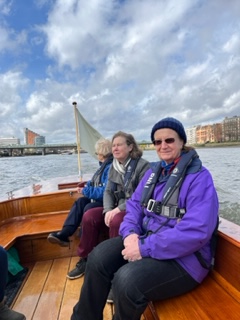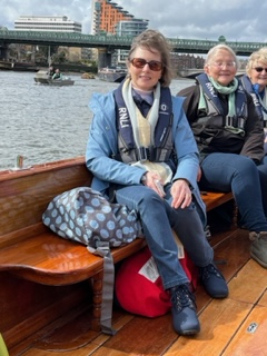 Siobhan Cassidy, interim chair of the Boat Race Company, following the tragic and untimely death of Dr Tim Senior, joined us on Amaryllis, and Chris Baillieu, CUBC President in our era, popped down to say hello when we came ashore. We were able to linger in the sunshine chatting to the delightful women of the Blue Boat crew and having our photograph taken by Ben Tufnell before decamping to a nearby pub for a convivial lunch. Both absentee crew members joined us via WhatsApp video while we were on the water and later in the pub, and the whole event, sparked off by the enduring enthusiasm of Vicky Singh (nee Markham), CUWBC President in 1973 and ‘74, was an unqualified success. We all hope that this will be the start of regular 50th reunions of erstwhile CUWBC rowers.