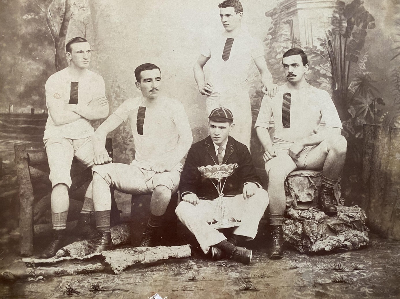 One of Andrews’ crewmates in 1889, Edward Wright, was Jane’s great-grandfather, and she has a tray he won at the previous year’s Dublin Metropolitan Regatta. Perhaps even rarer is the photograph she has of the 1888 Pembroke crew that won the Dodder Challenge Cup, which at that time was an event for ‘gentlemen who have not attained their 21st year, and who have never won a race, unrestricted to class of boat, at a public regatta’. It is the first photograph of a Pembrook R. C. crew that neither I nor Irish Rowing archivist, Kieran Kerr, have seen.