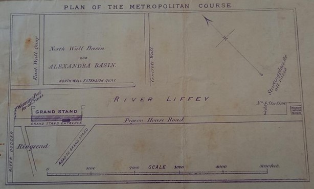 Plan of the race course for Dublin Metropolitan Regatta taken from the 1885 Programme. Except for 1937 and 1938, this was the course used between 1869 and 1939.