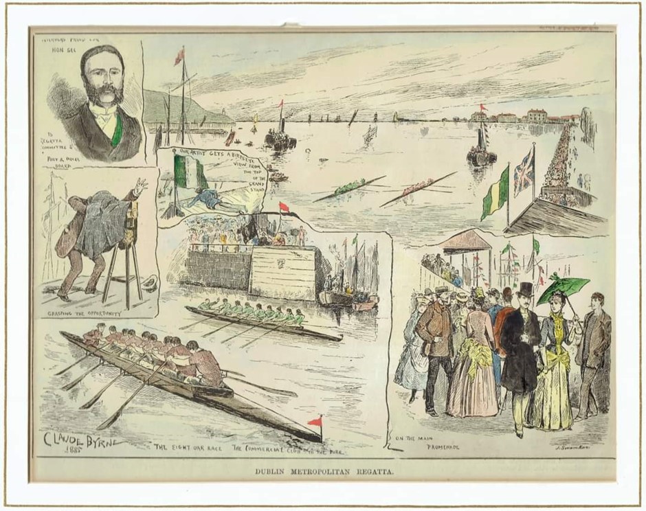 A familiar sight to Edward Wright. Dublin Metropolitan Regatta (1885) with the winning post denoted by the red flag. Picture: Irish Rowing Archives via David Porteus.