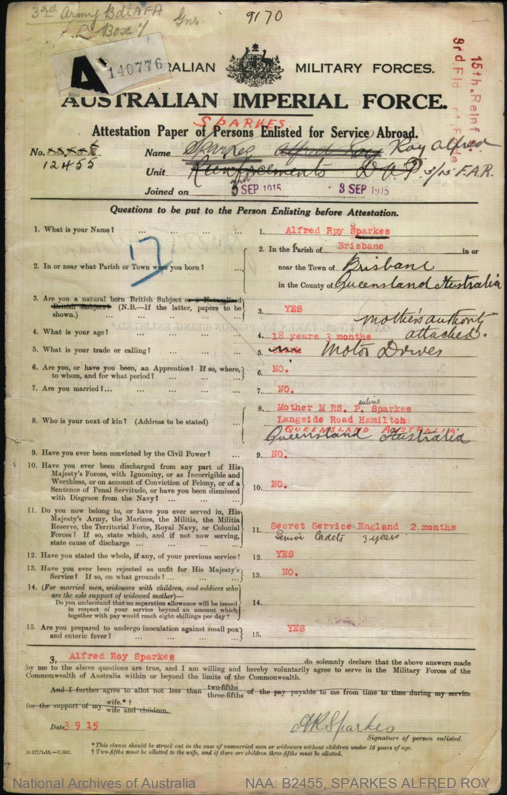 It is often said that fact is stranger than fiction, but few things are so strange as the tale of schoolboy rower and putative schoolboy spy, Alfred Roy Sparkes. Of the over 330,000 Australians to enlist during the First World War, he is the only who claimed to have worked previously in the Secret Service in Britain. However, whether this is true is something of a mystery.