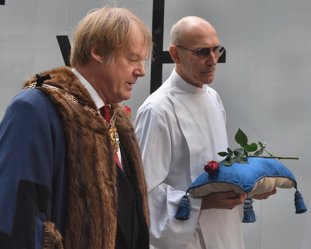 It is against this background that, on 19 June, I found myself in a strange little procession winding its way through the City of London’s meandering medieval street system starting from the area’s oldest church, All Hallows-by-the-Tower, stopping briefly to cut a rose in a small urban public garden and then delivering the bloom to Mansion House, the official residence and office of the Lord Mayor.