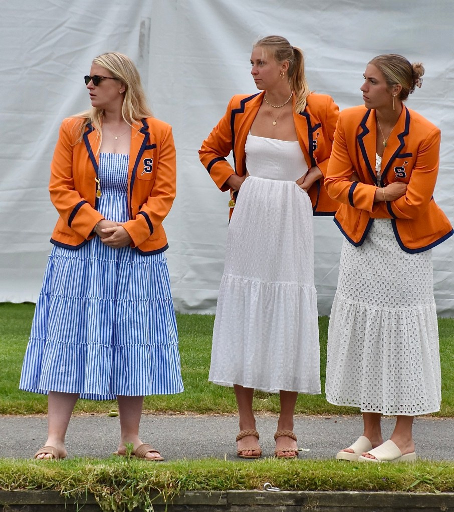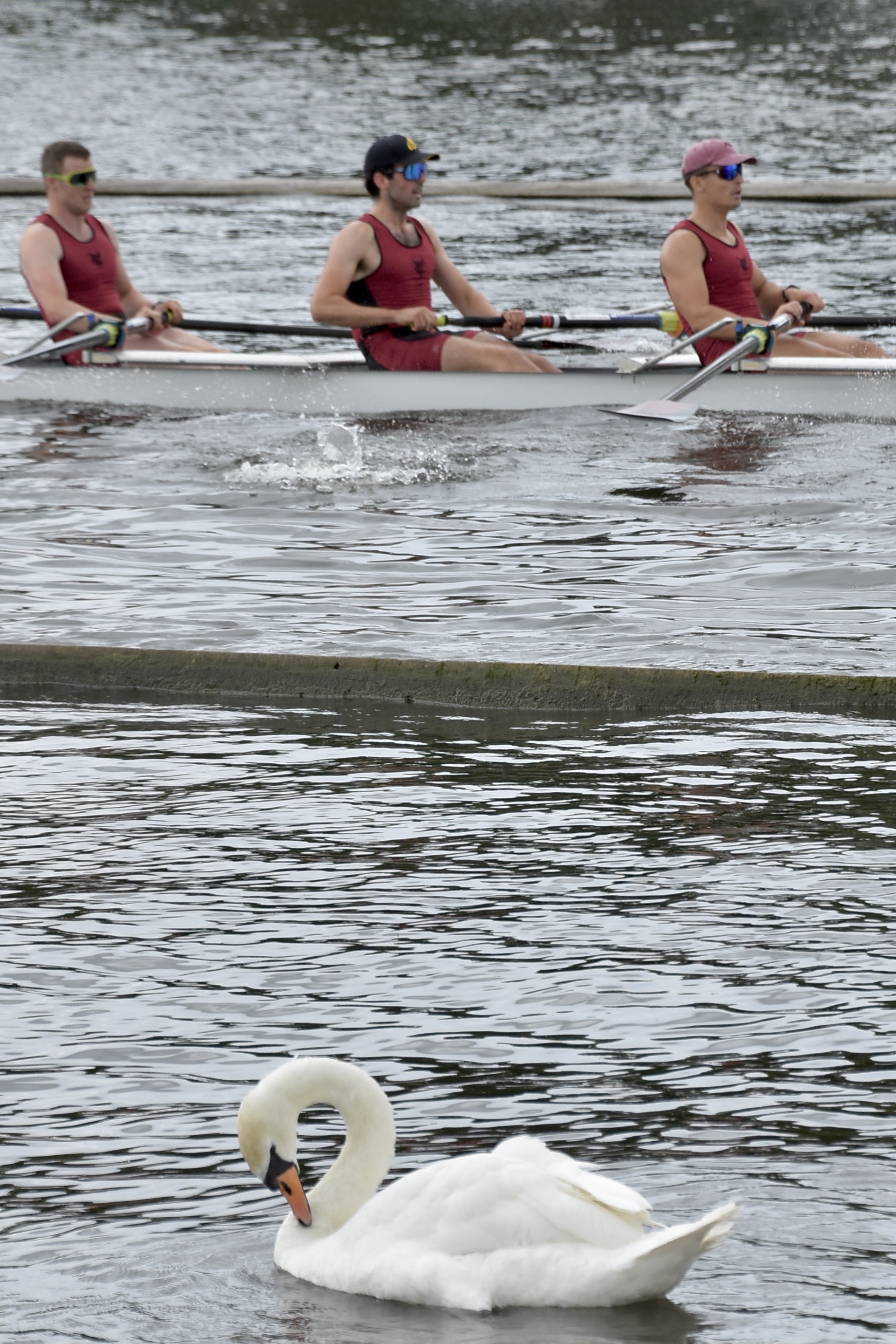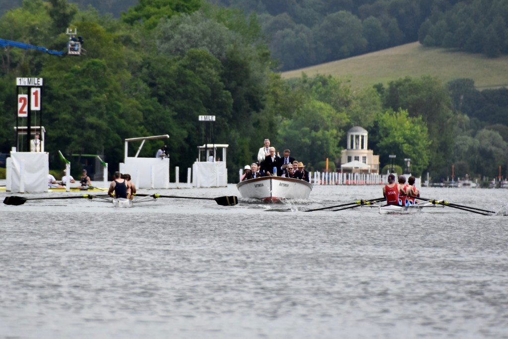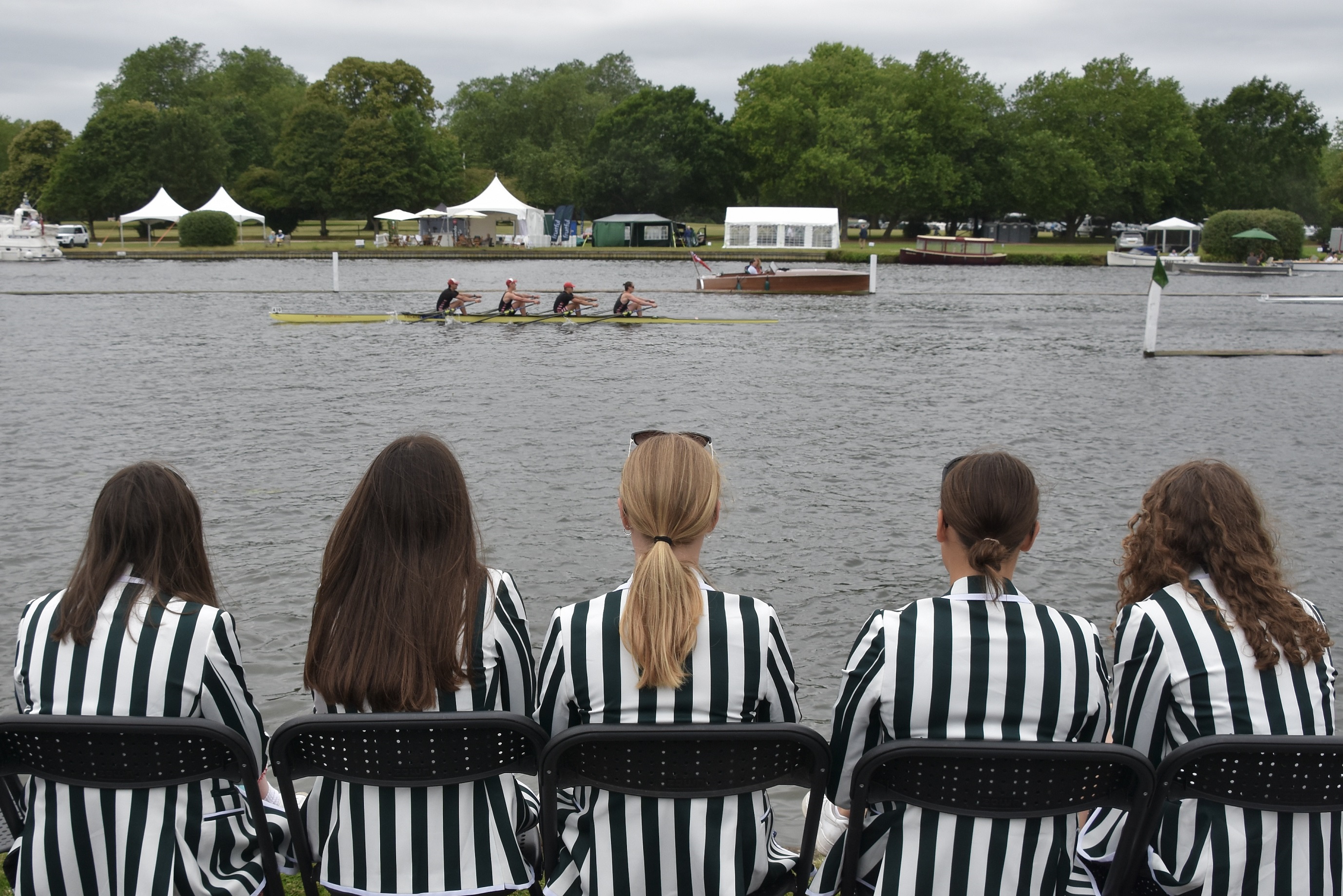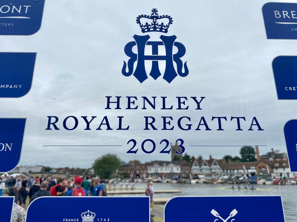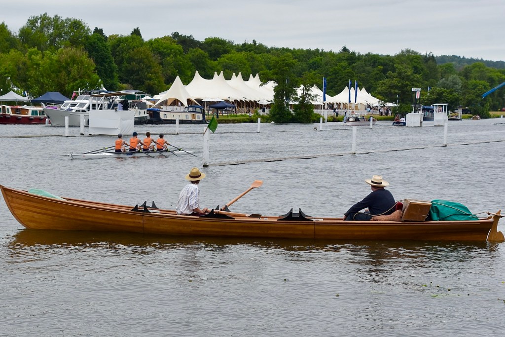 An opening ode on (sic) Royal Henley Regatta from a society magazine of 1950. Of its time, the final lines assume a knowledge of the Greek myth of Hero and Leander. Leander swam the Hellespont strait every night to be with his love, the priestess Hero. I have always thought that the Phyllis Court Rowing Club missed out by not calling itself the Hero Rowing Club, sited as it is across the water from Leander.A Wyfold (Club M4-) heat between Star Club (left) and Durham ARC (right) umpired by Fiona Dennis. Star won by 1 1/3 lengths.Good enough for Instagram? Three stylish attendees check their selfies.A British announcer’s nightmare. In a heat of the Prince of Wales (Intermediate M4x), Utrechtsche Studenten Roeivereeniging Triton and Cadetten Roei- en Zeilvereniging Dudok van Heel, Netherlands (left), beat Koninklijke Studenten Roeivereeniging Njord, Netherlands (right), by 2 1/4 lengths.Tyne ARC’s Thames Cup crew in a huddle.The University of Virginia, USA, leading Oxford Brookes “C” in a heat of the Temple (Student M8+). The Americans won by 2/3 length.Some elegant spectators study their programmes between races.Latymer Upper School soon after its defeat by Deerfield Academy, USA, in the Princess Elizabeth (Junior M8+).Waiting for Syracuse University’s race in the Temple (Student M8+) against the University of London. Orange beat Purple by 1/3 length.Hereford a few lengths behind London in a heat of the Wyfold (Club M4-).Members of the Dutch student club, Nereus, wear blazers that they have inherited from former members of their club and which they, in turn, will pass on. Each owner stitches his name inside the jacket, but repairs are forbidden until damage renders the garment unwearable. However, there appears to be no excuse that allows for cleaning them.Buckingham Rowing Club, Australia, in their heat of the Diamond Jubilee (Junior W4x). Sadly, they had a long journey for just one race, they lost to Sir William Perkin’s School.Going to blazers.London RC winning its heat of the Britannia (Club M4+) by 1 1/2 lengths.This year was the second time the regatta had run over 6 days and the new opening day of Tuesday is proving to be busy.Vesta’s Wyfold “B” Crew passes a disinterested local resident. They lost to Thames “B” by 4 lengths.Thames leading its Tuesday heat of the Prince of Wales (Intermediate M4x). They beat City of Cambridge and Cambridge 99 by 1 1/2 lengths.In the Princess Elizabeth (Junior M8+), Dulwich College (pictured) lost to Marin Rowing Association, USA, by 3 3/4 lengths.Brisbane Boys’ College, Australia, have some final words before their heat of the Princess Elizabeth (Junior M8+). They beat Monmouth School by 4 lengths.Sir William Borlase’ Grammar School “A” winning their heat of the Diamond Jubilee (Junior W4x) against Molesey by 1/2 length.A Bucks – Berks ferry supervisor finds that his job is not too demanding. Lea paddle to the finish in the Fawley (Junior M4x) after opponents Trentham were disqualified for their steering.Aquil Abdullah, the first African-American male rower to qualify for the Summer Olympics (2004) and the first African-American to win the Diamond Sculls (2000) and also the first to become a Henley Steward (2022). Feeling the strain. Cork losing its heat of the Britannia (Club M4+) to London by 1 1/2 lengths.Two keen spectators keep a critical eye on proceedings.A Banksy-esq piece of graffito on a Leander wall.