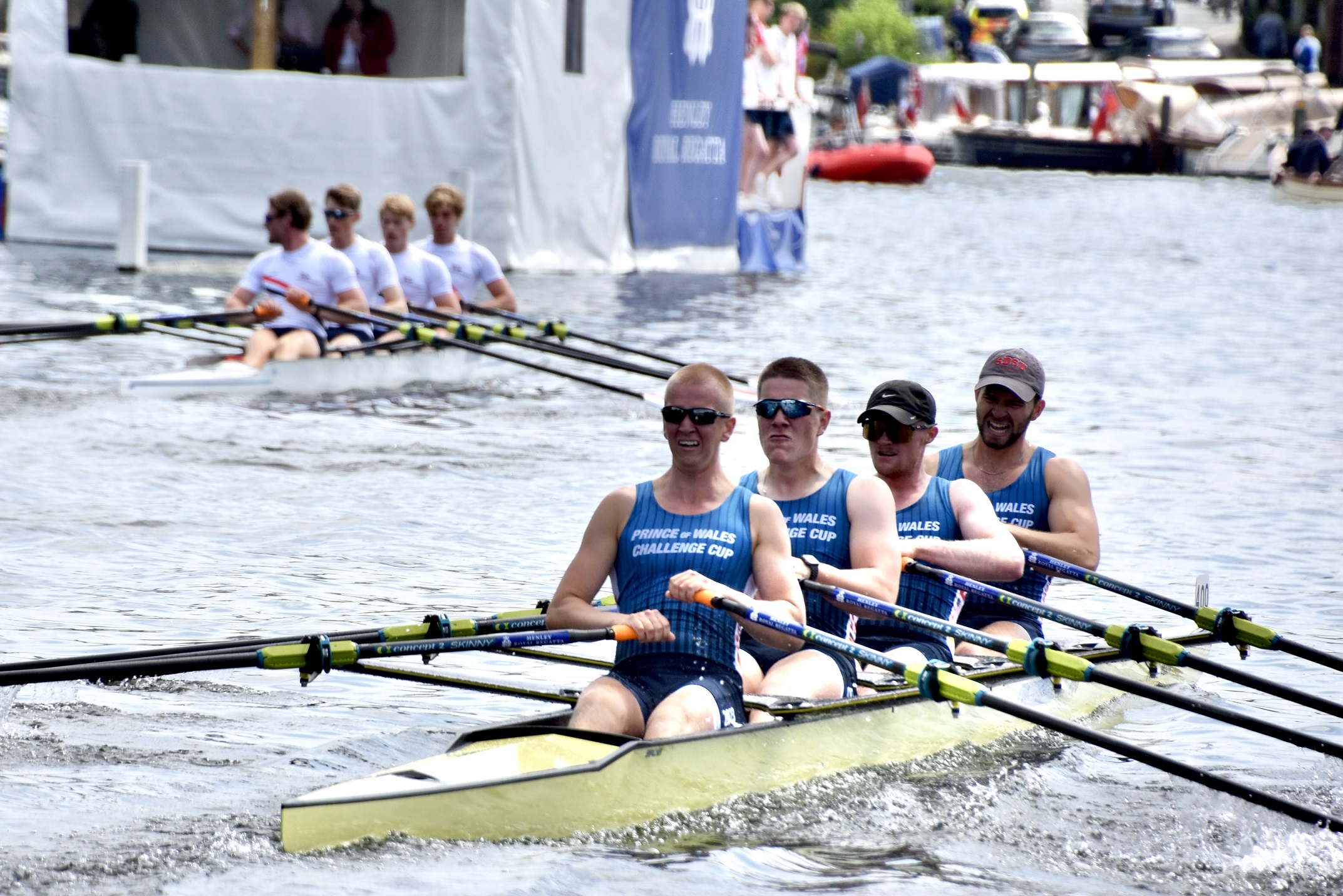 Hollandia Roeiclub, Netherlands, beat Bagsvaerd Roklub, Denmark, by 2 3/4 lengths in the Prince of Wales (Intermediate M4x).