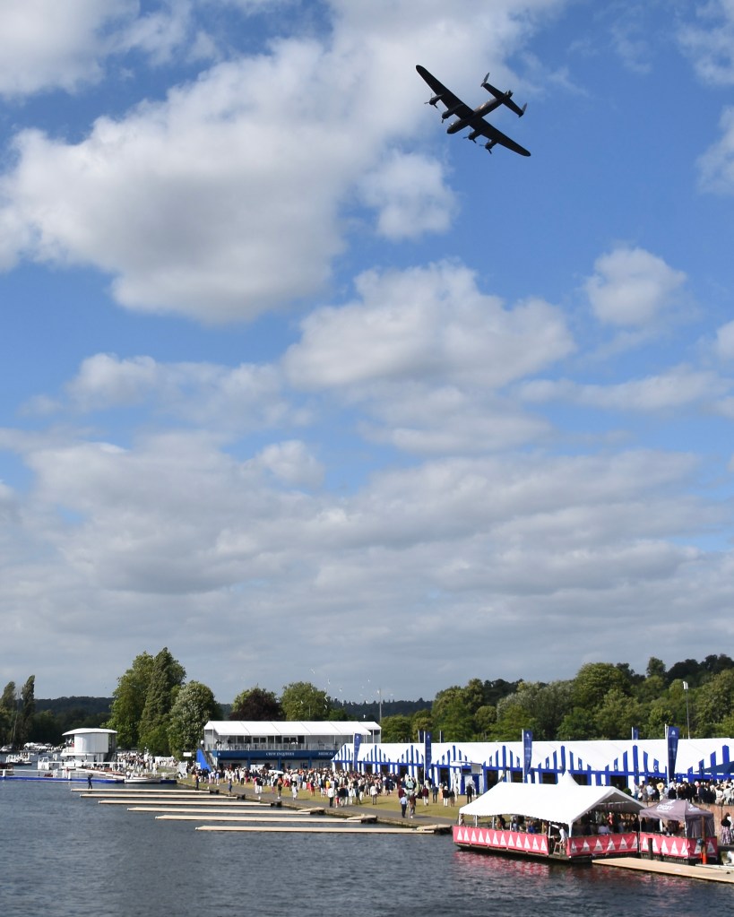 On Sunday there was a fly-past by an Avro Lancaster, the most famous and successful RAF heavy bomber of the 1939-45 War. Part of the Battle of Britain Memorial Flight, it is one of only two airworthy Lancasters left in the world – even though 7,377 were built. Wizard!Until the 1960s, society magazines reported on who “In Society” had been at Henley. You had to be born into Society but, for better or worse, we have replaced Society with Celebrity, a group that will accept absolutely anyone.HTBS brings back society reports from Henley.