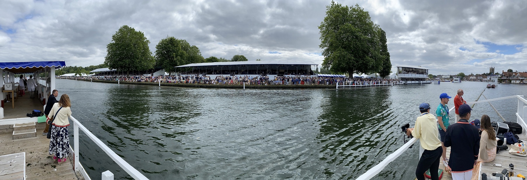 The final strokes of the Diamond Jubilee. The HRR website said: “The Tideway crew led from the start, and held off multiple advances from the favoured Wycliffe crew who seemed unable to match the steady intensity which the London girls brought to Finals Day.” The Wyfold (Club M4-): London Rowing Club beat Thames Rowing Club ‘A’ by 1 1/2 lengths. London’s Wyfold win was their first Henley victory since 2011 and the fact that it was against old rivals and neighbours, Thames, must have made it even sweeter. The Diamonds (Open M1x): Oliver Zeidler, Frankfurter Rudergesellschaft Germania 1869 e.V., Germany beat Piotr Plominski, WTW Warszawa, Poland, “Easily”.Diamond Geezer. One of the least surprising finals results, World Champion, Oliver Zeidler, had no trouble in securing his third Diamond Sculls wins. Could the Diamonds record of six wins held by both Sam Mackenzie and Mahé Drysdale’s be under threat? Waiting for a race. A somewhat distorted panoramic view from the photographers’ stand sited next to the progress board, ten strokes from the finish.The Prince Philip (Junior W8+): Greenwich Crew, USA, beat Deerfield Academy, USA, by 1/2 length. An all-American final had Deerfield faster off the start and were a canvas ahead for much of the race, but Greenwich inched ahead and Deerfield could not respond.The Princess Elizabeth (Junior M8+): St Edward’s School beat St Paul’s School by 1/3 length.St Edward’s last won the PE 24-years ago but won a hard fought race against the defending champions, St Paul’s.The Remenham (Open W8+): Maple Bay Rowing Club, Canada, beat Leander Club ‘A’ by 1 1/4 lengths. Canada’s convincing victory was revenge for the Varese World Cup two weeks previously when the British took silver nine hundredths of a second ahead of them in third. The Princess Royal (Open W1x): Diana Dymchenko, Rowing Club Baku, Azerbaijan (pictured) beat Marta Wieliczko, Klub Wioslarski “Wisla” w Grudziadzu, Poland, by 3/4 length.Marta Wieliczko. The HRR website said of the Princess Royal: “In a race measured by feet and inches rather than lengths, the two scullers couldn’t be separated for the majority of the Course, until they came to pass the progress boards, at which point Dymchenko… put together a blistering finish…”The Queen Mother (Open M4x): Nottingham Rowing Club and Leander Club beat Akademicki Zwiazek Sportowy Torun and Wloclawskie Towarzystwo Wioslarskie, Poland, by 1/2 length. HRR: “The (open) secret of the British crew was their combined 19 Henley entries over the last few years, compared to the total unfamiliarity with Henley Royal Regatta for the Polish crew who are current world and European Champions.”
