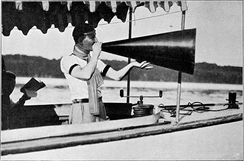 Not quite a Kodachrome, more a late 19th Century glass slide, name the rowing coach juggling with his mega-megaphone on the Hudson River.