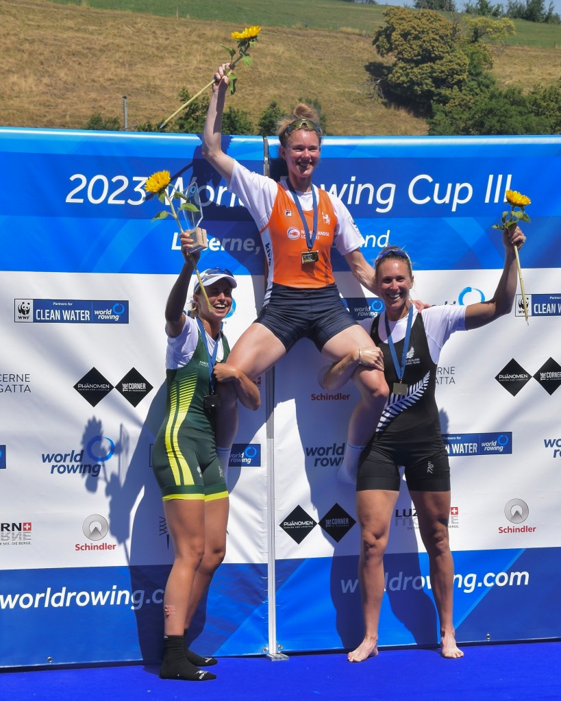 Karolien Florijn of the Netherlands winning the Women’s Single Sculls A-Final. Tara Rigney of Australia was second and Olympic Champion Emma Twigg of New Zealand was third.