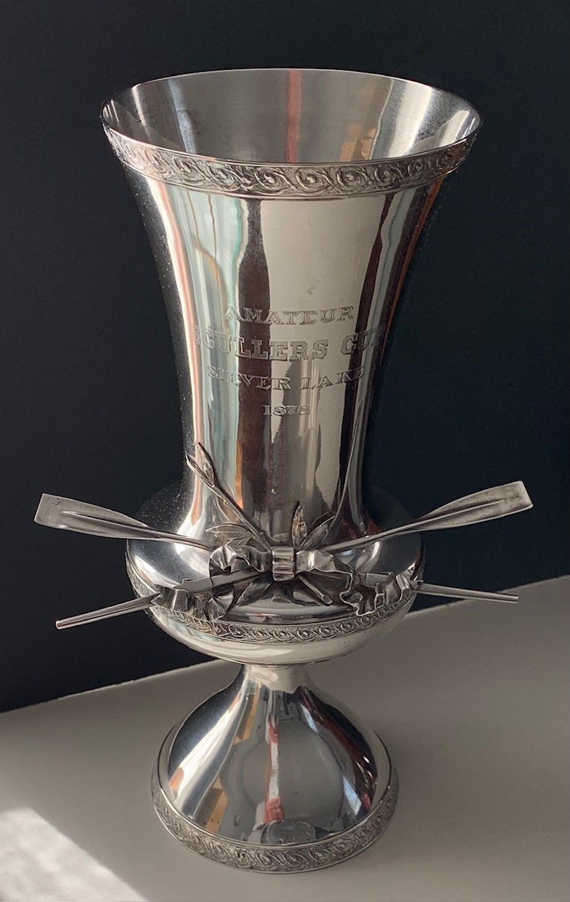 The Amateur Single-Sculls drew seven starters. The race was for a “magnificent silver cup… will be on exhibition, today, in the window of Bigelow, Kennard & Co. Washington Street.” (Boston Globe June 13, 1878). Frank E Holmes (Pawtucket, Rhode Island) won the cup.