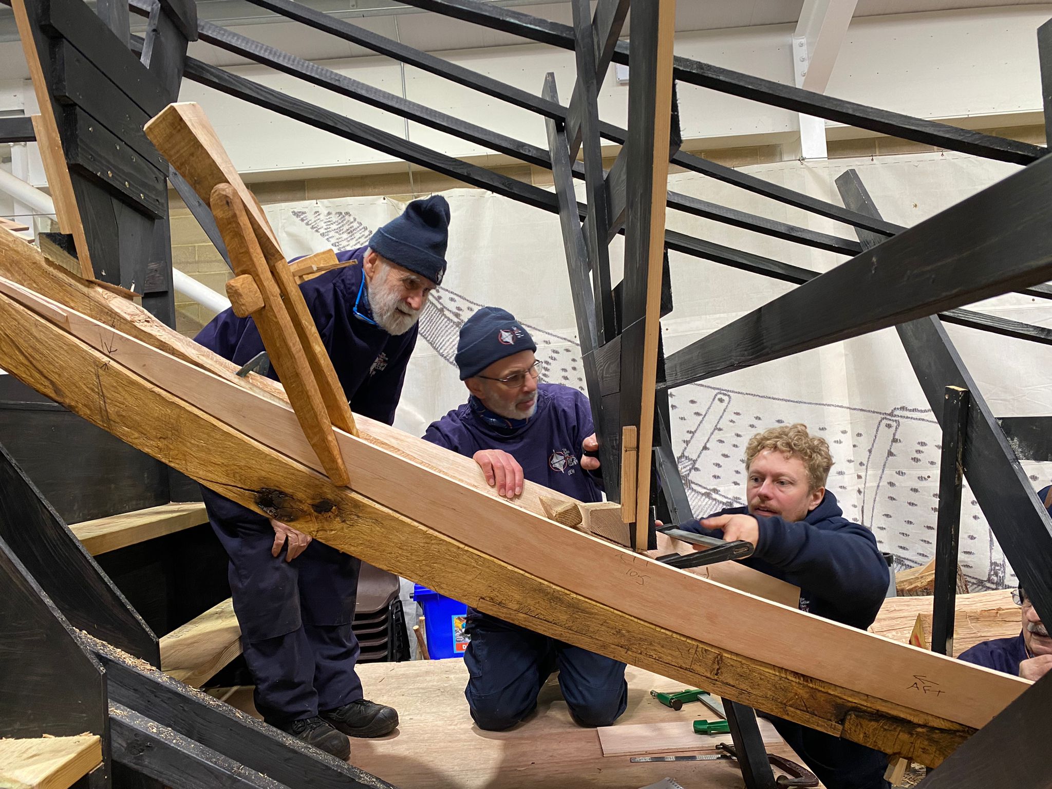 Work began in 2021 in the Longshed on Woodbridge’s waterfront, a shed long enough in which to build a 27-metre ship. The project is supported by a specially created charity, Sutton Hoo Ship’s Company. The volunteers constructing the replica are using oak planks and iron rivets while attempting to discover what other materials and methods were used by the seventh century shipwrights. Tim Kirk, a modern-day shipwright, has let it be known that the plans call for 80 trained rowers to find out how the ship actually moved. ‘It is really a big experimental archaeology programme,’ he said on ITV News.