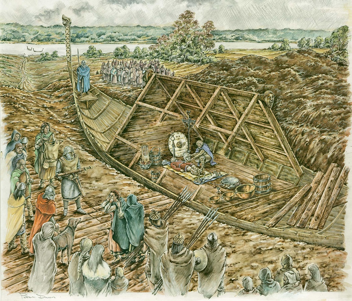 A play entitled The Wuffings by Ivan Cutting and Kevin Crossley-Holland and staged by Eastern Angles Theatre Company in 1997 re-imagines the Mound 1 burial. John Preston’s historical novel The Dig (2007) re-imagines the 1939 excavation when the ship was found, as does Netflix’s film adaptation of the story in 2021 starring Carey Mulligan and Ralph Fiennes (which came in for some criticism for hinting at a love affair between Edith May and Basil). These and the video game Assassin’s Creed Valhalla (2020) that features the landscape of the site serve to remind East Anglians that they walk on hallowed ground, as did Angles, Saxons and Vikings before them.