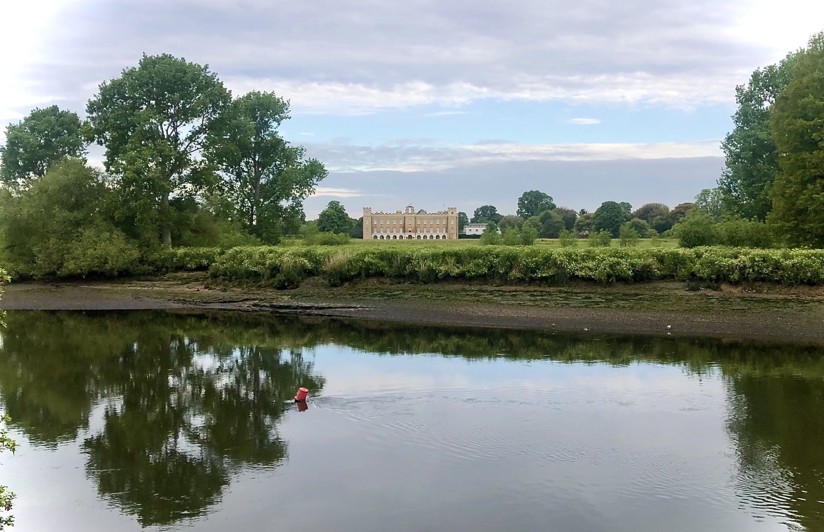 John Rocque’s map of 1743 showing Syon House and, marked “x”, the future site of the Pavilion Boathouse.The boathouse part of the Pavilion was rendered unusable when the river level rose due to the building of embankments. Sometime in the 20th century, the Pavilion became the Lodge when it was converted into living accommodation. It is claimed that the Grade I listed building is London’s oldest sporting-related pavilion.Syon House viewed from Kew Gardens. According to the 2012 Thames Landscape Strategy Review, the tide meadow at Syon Park is the only natural riverbank left in Greater London. Picture: @sarahkern101.A modern aerial view of Isleworth and the Pink Lodge.An Auriol Kensington RC octuple passes the Pink Lodge, 2021. Picture: Daniel Walker.Looking downriver from Isleworth towards the Pink Lodge (just visible in the trees). Picture: @sarahkern101.
