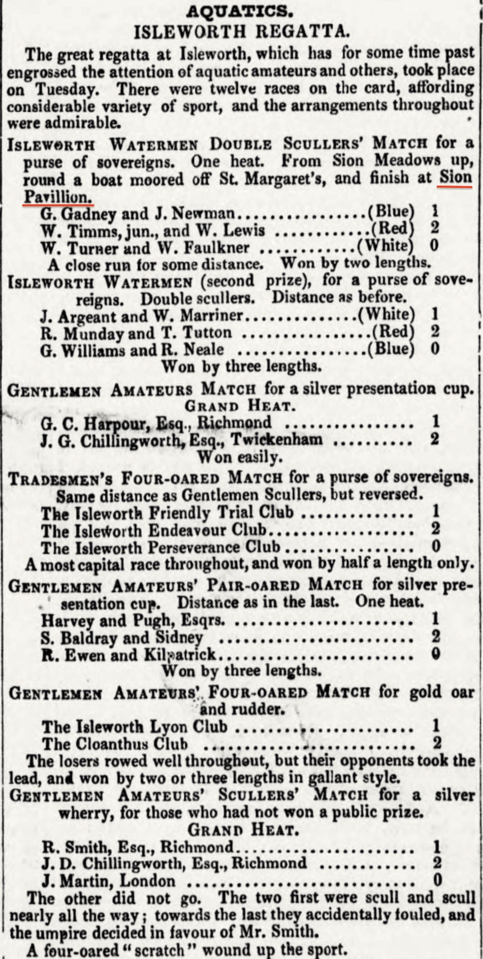 Researching my recent piece on the regatta held near Syon House in West London in 1842 to mark the wedding of Lord Prudhoe uncovered a mix of interesting things that deserve a HTBS post.