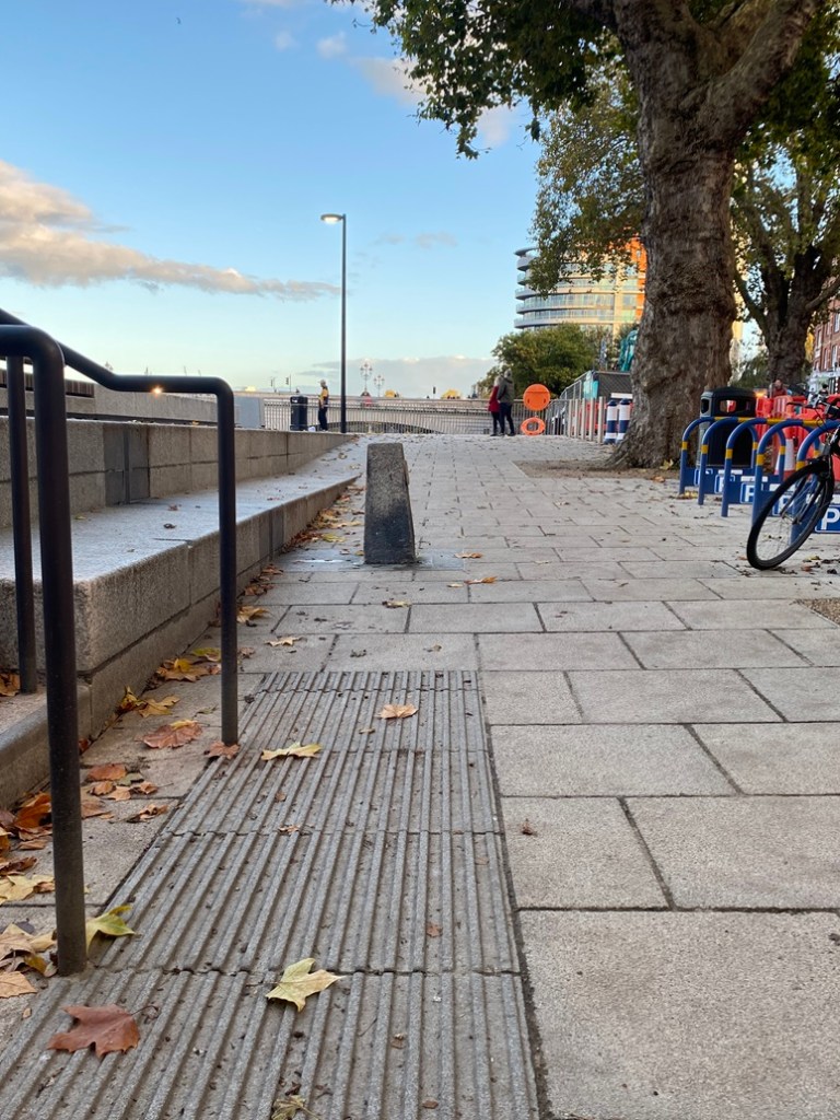 The Putney Stone has been moved about ten metres back from the river edge where it was (just) visible from the water and it has been unceremoniously placed a few steps down from the new raised space sitting almost as an obstruction on the pavement and giving the impression of being an afterthought. According to thamespath.org.uk, it was moved back to allow “a large viewing platform” to be erected.