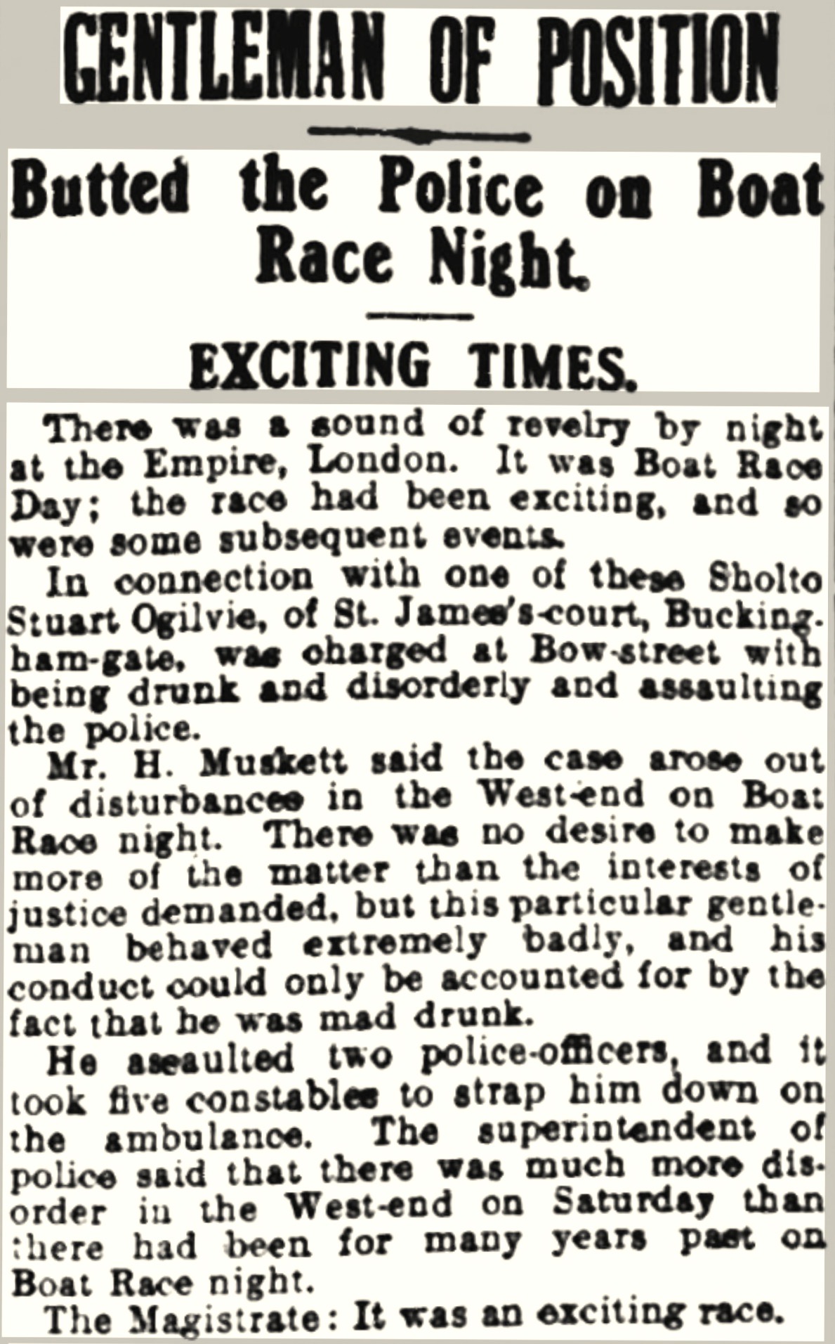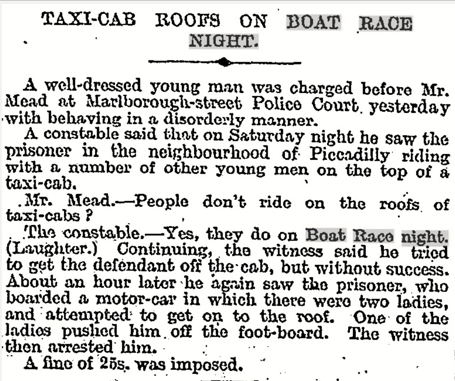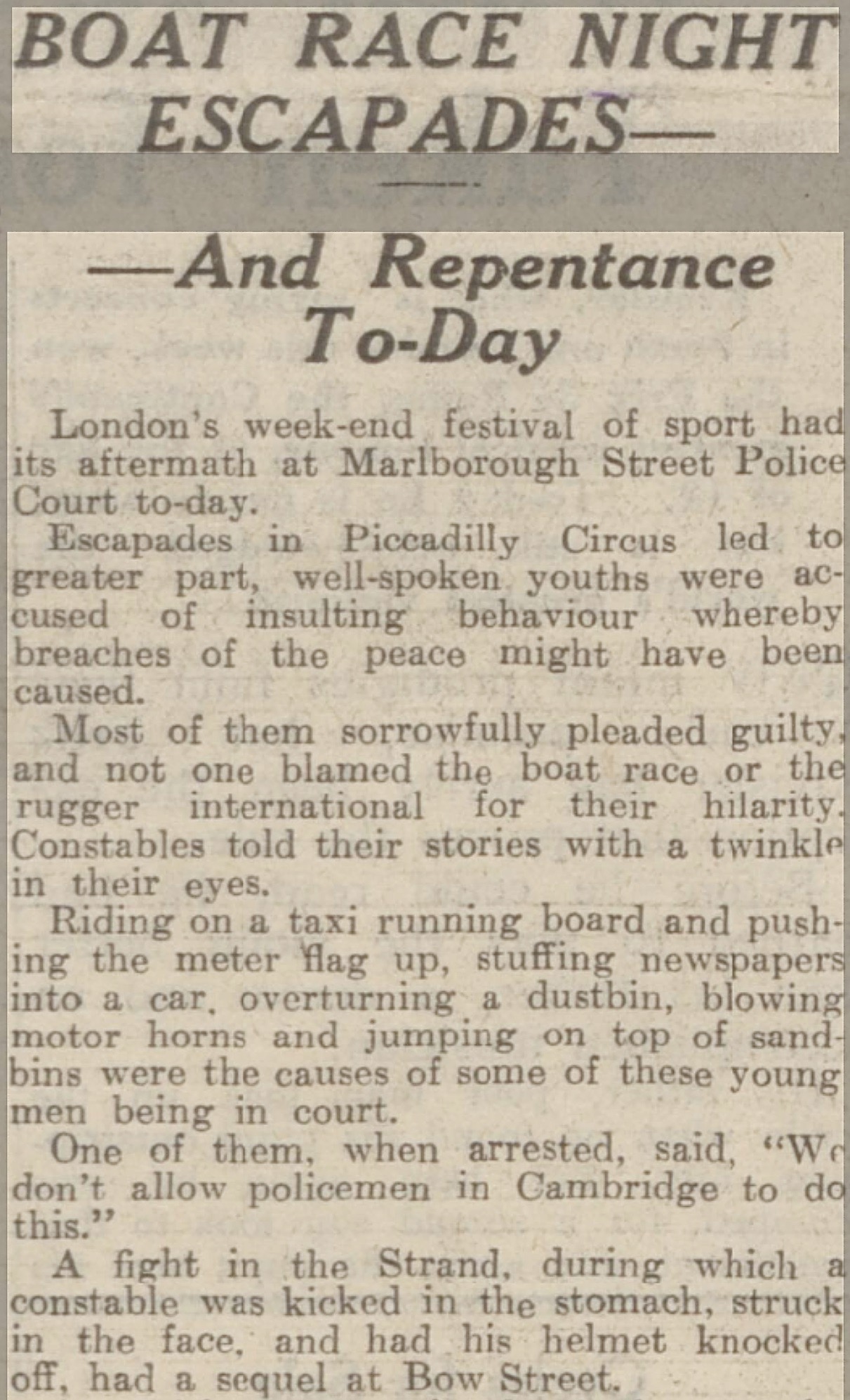 In a website on literary and cultural references in Wodehouse, several court appearances on the morning after the Boat Race are noted: